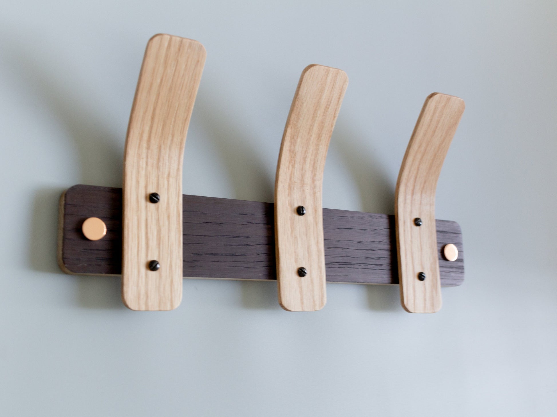 Embrace the Scandinavian influence of this solid oak coat rack, crafted with steam-bent precision. Its organic form is softly inviting, the perfect accompaniment to any room’s relaxed atmosphere. 10kg-bearing wall hooks provide ample support to coats and hang bags, while mirror copper screws and fixtures complete the build. Accent any décor with this beautiful example of UK-crafted handiwork; rendered in a classic, satin varnish finish and with a low carbon footprint.