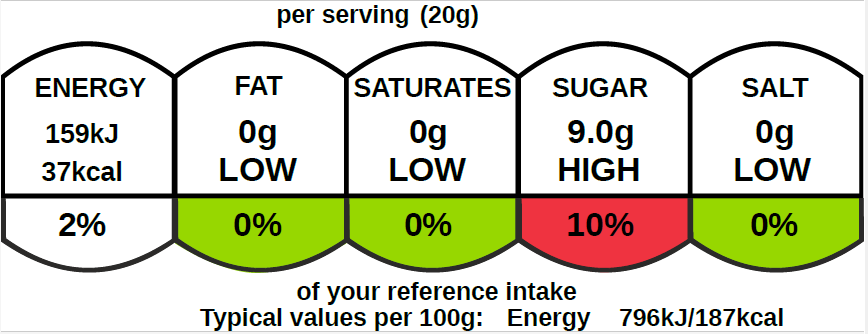 Red peppers, Tomatoes, Red wine vinegar (sulphites), Sugar, Red chillies (9%), Garlic, Red habaneros (3%), Root ginger.