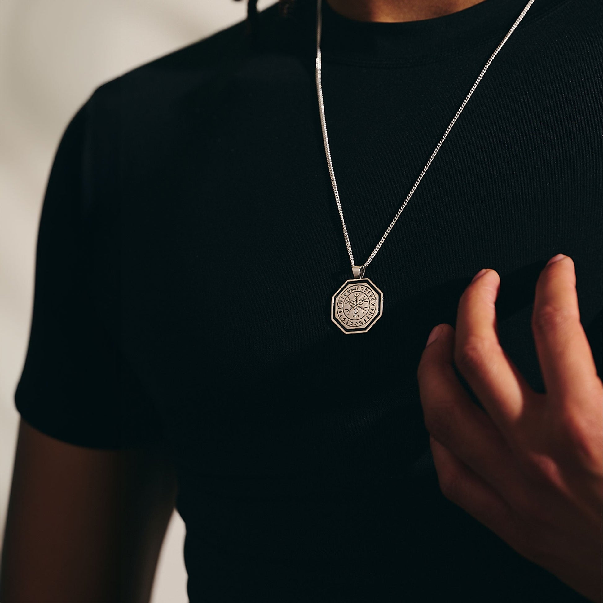 Octagon Vegvisir Viking Rune Personalised Silver Necklace