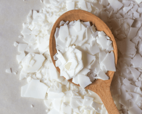 • It is solid ivory white, waxy flakes with a very faint odour made from 100% plant materials. The fatty acids are taken from olives and are chemically very similar to the skin’s natural lipids.