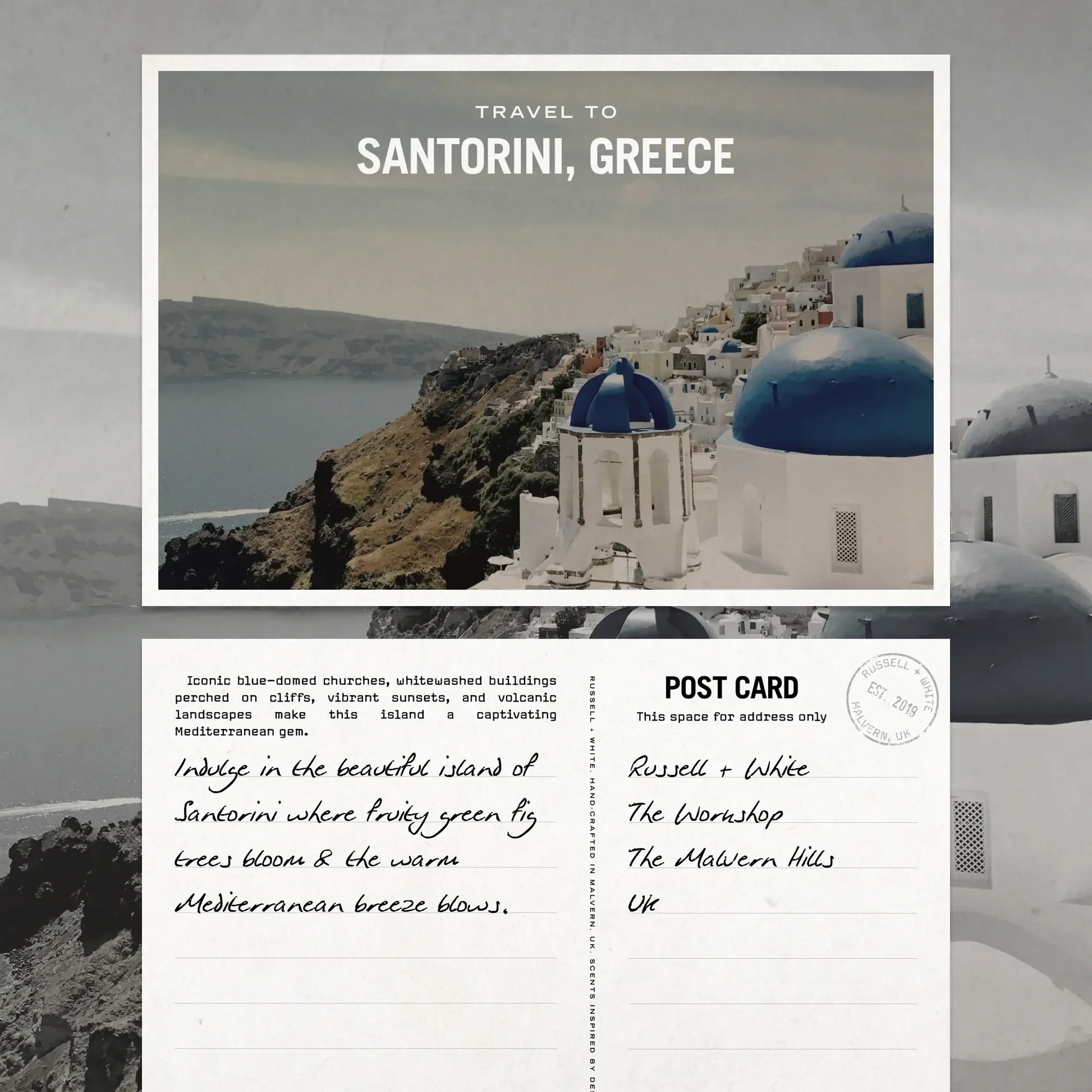 Indulge in the beautiful island of Santorini where fruity green fig trees bloom & the warm Mediterranean breeze blows.