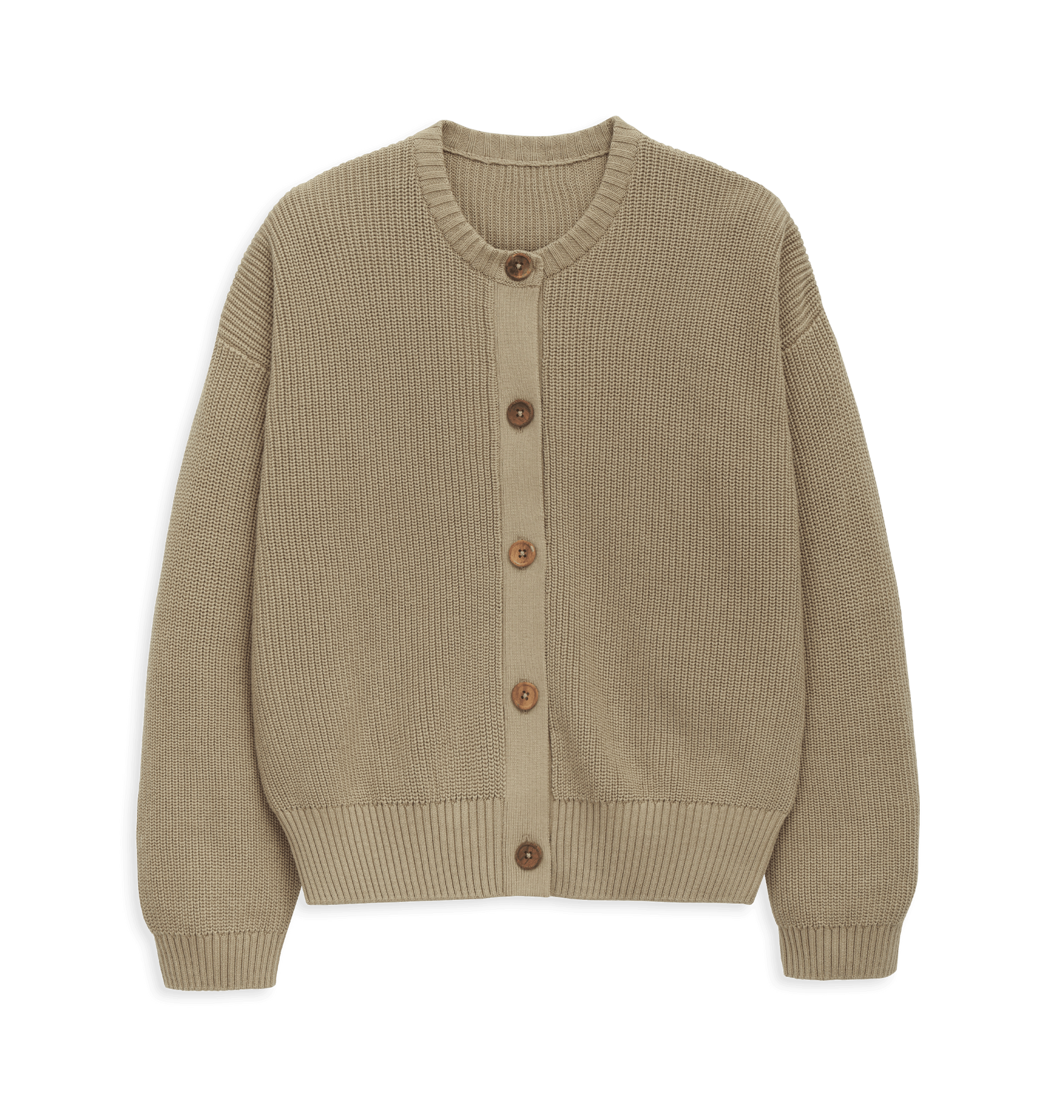 The Crew Neck Cardigan is made from high quality organic cotton featuring a crew neck wooden buttons and a textured knit. With dropped shoulders its designed for effortless layering all year round. Timeless breathable and naturally soft.