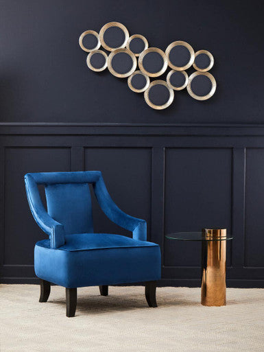 Echo the rose-gold tone with picture frames or lamp hardware. Layer a small floral arrangement or sculptural bowl to create a magazine-worthy vignette. Place two tables at either end of a sofa for a cohesive, light-reflecting look.