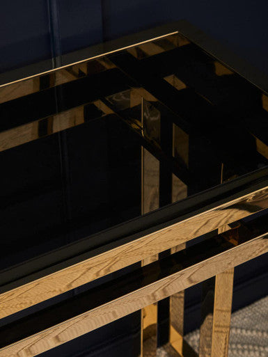 Crafted from durable stainless steel and mirrored glass, this piece is as robust as it is beautiful. The lower shelf mirrors the top, doubling your styling options for books, vases, or baskets while keeping surfaces easy to wipe clean.