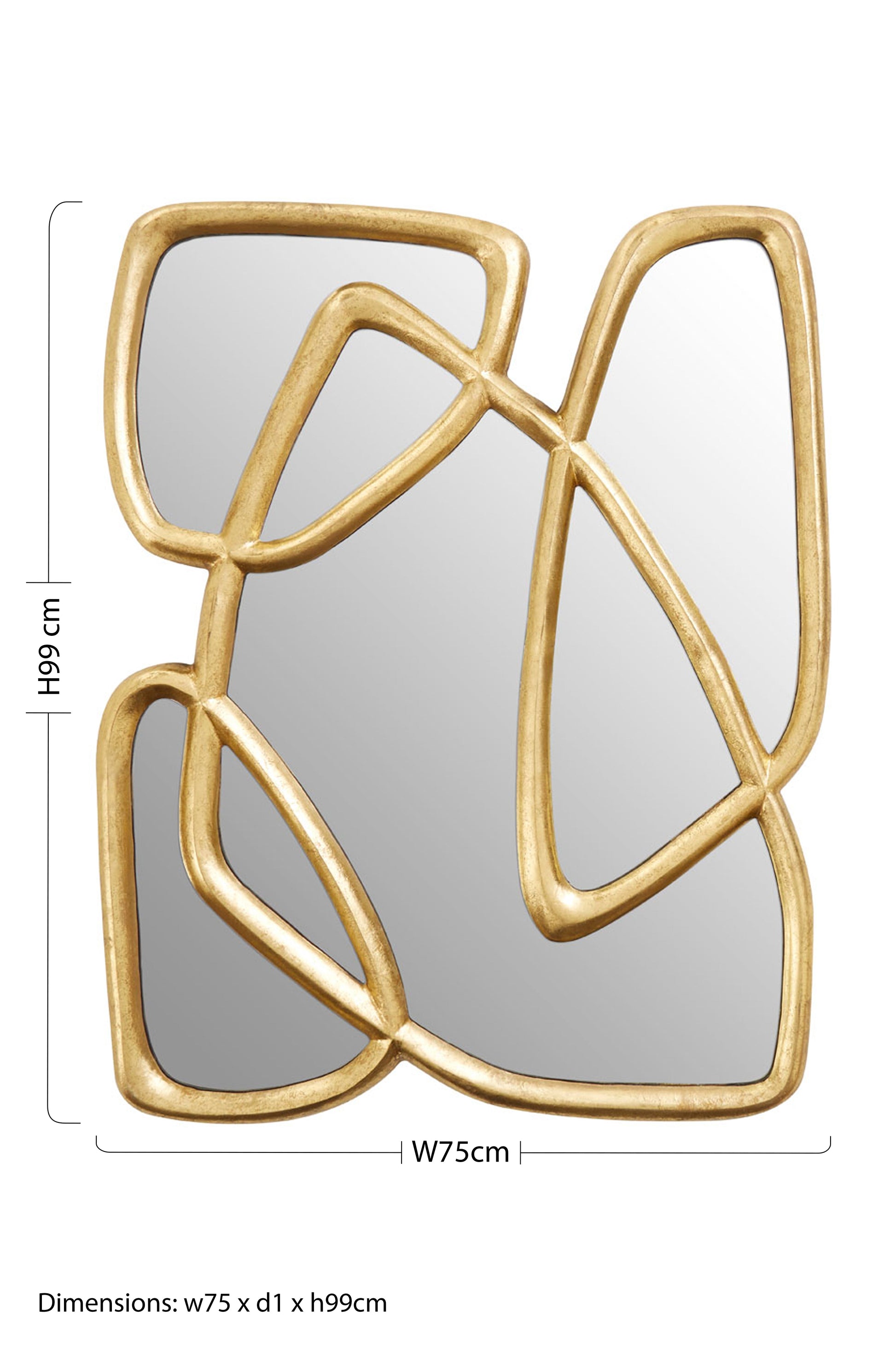Make a confident statement with the gold and green wall mirror from the Pablo range. Four intersecting mirrored sections overlap in an abstract composition, trimmed with golden accents that contrast against subtle green notes.