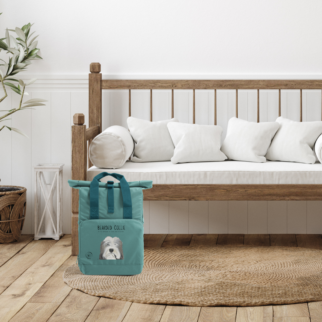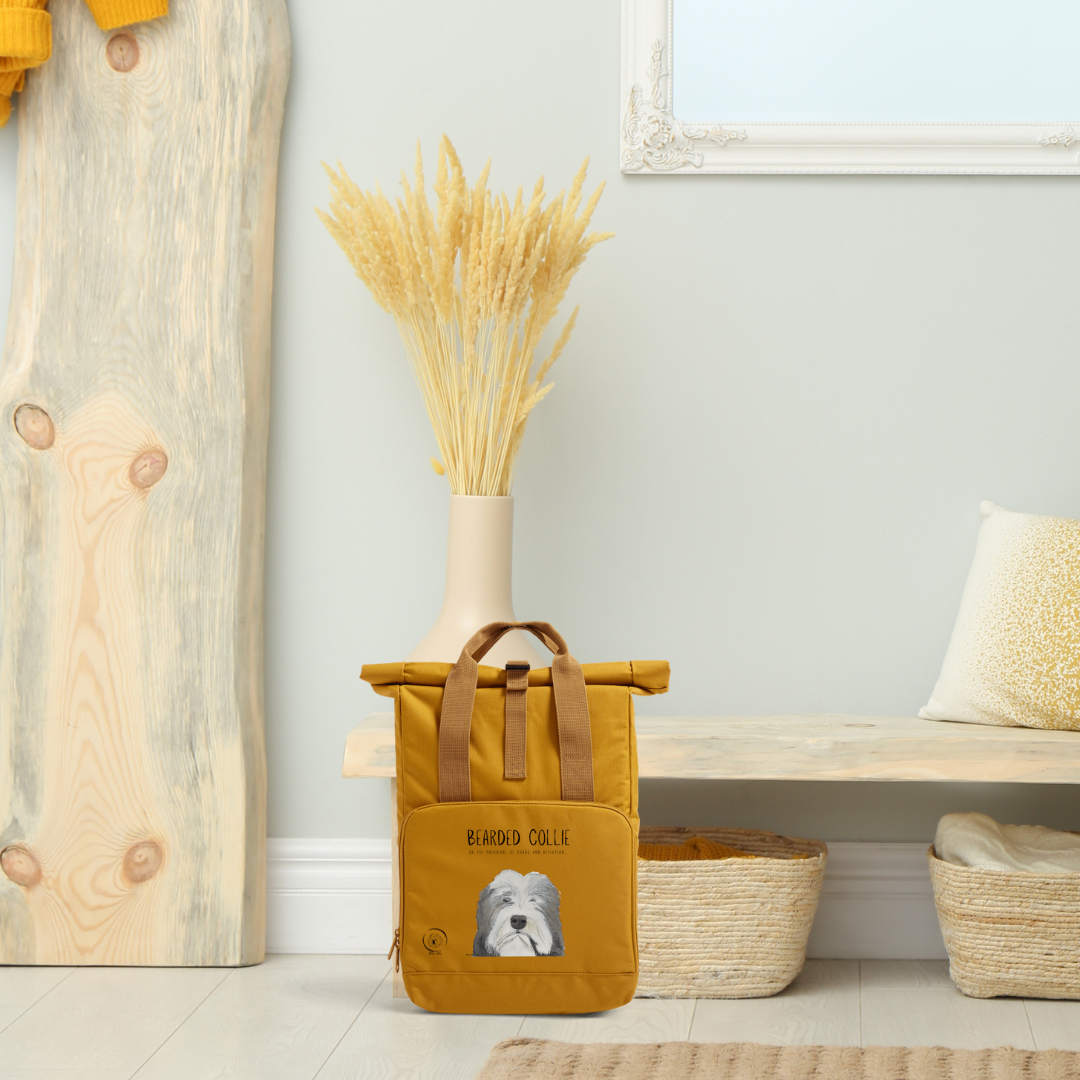 Meet the backpack that can keep up with the fluff tornado that is the Bearded Collie. Sustainably and ethically made for stylish chaos-carriers, this high-end backpack features our beloved “hairicane of chaos and affection” in full floofy glory. Whether you're heading to work, class, or a spontaneous squirrel chase (hey, it happens), this bag’s got room for everything—except maybe dog hair. Just kidding. There will definitely be dog hair.