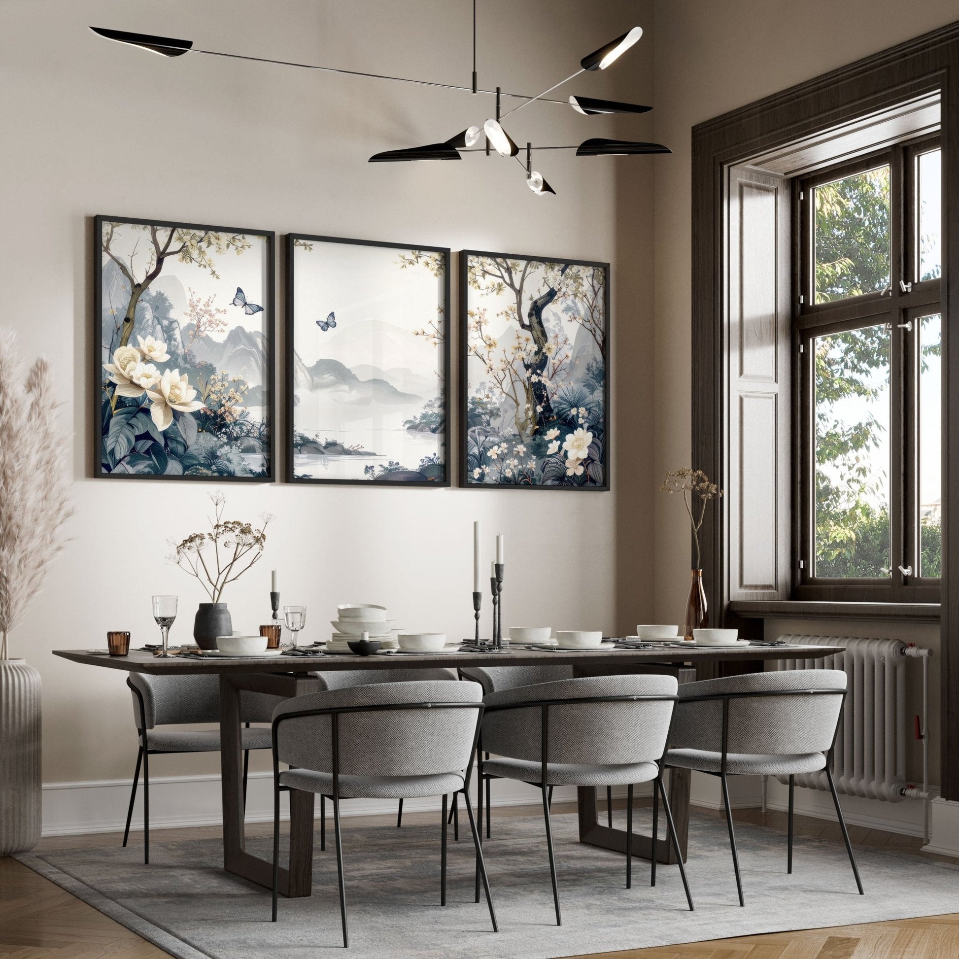 Paintings For Living Room | Set of 3 Chinoiserie Wall art Prints