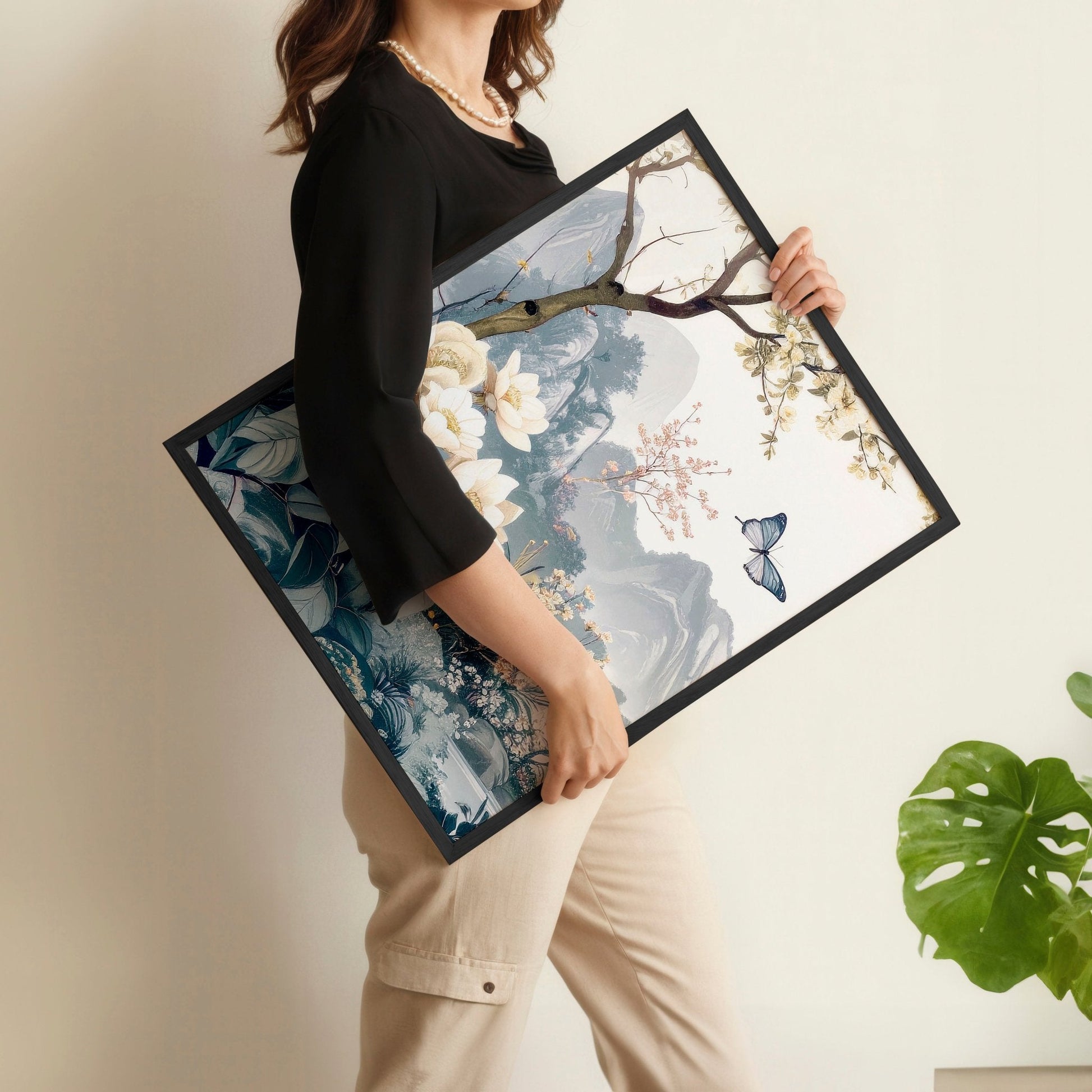 The teal tones in these prints not only add a dash of tranquillity; they also create a dramatic focal point, enhancing your existing colour scheme or providing an eye-catching contrast. The intricate Chinoiserie style, with its delicate brushstrokes and elegant designs, adds a touch of luxury that will make your living room a more inviting and inspiring space.