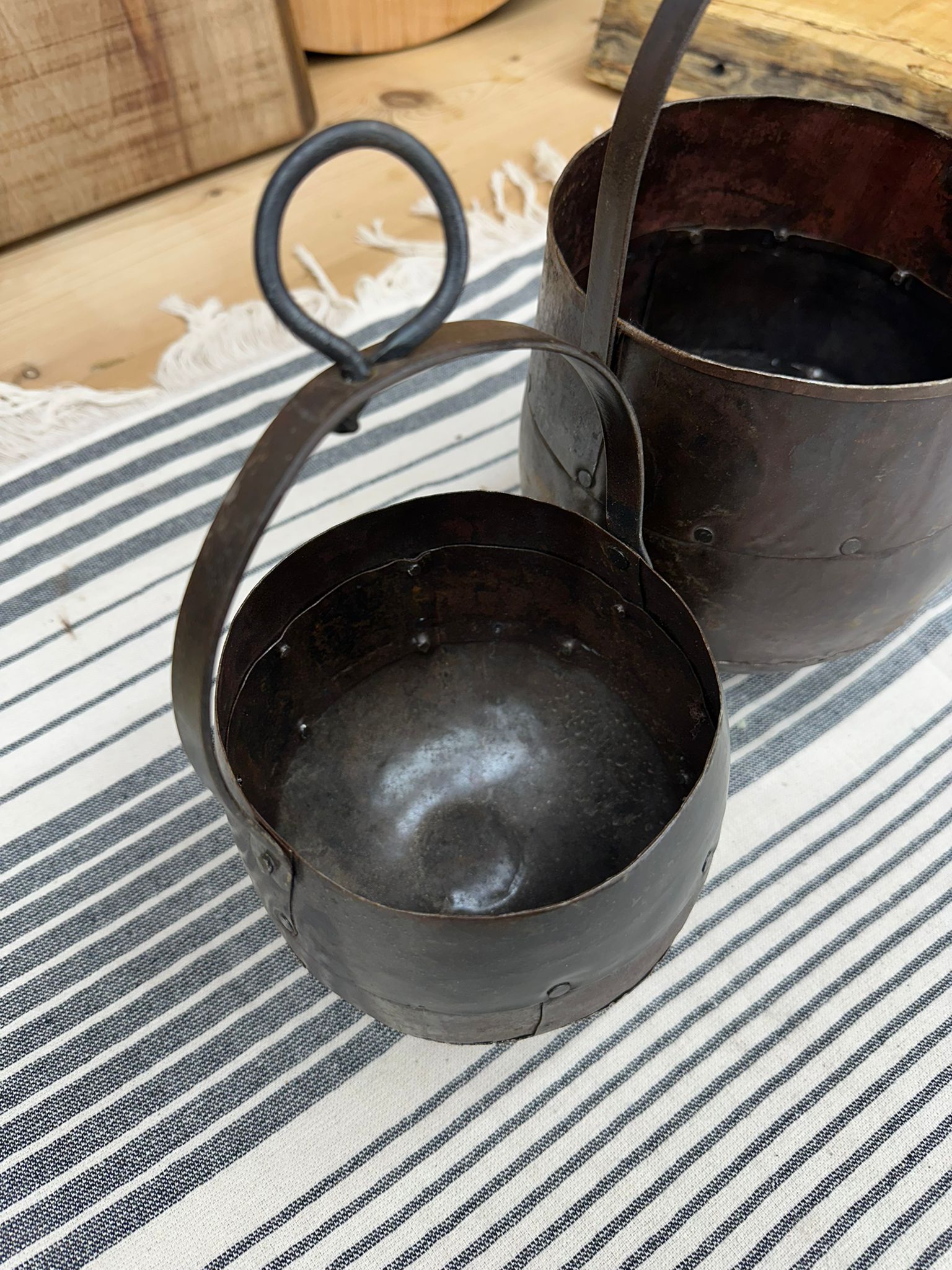 Pair Of Iron Hanging Plant Pot Planter / Herb Pot / Rustic Decor