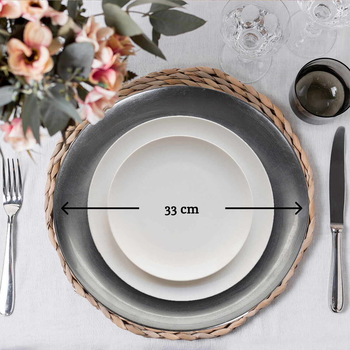 Made using polypropylene, these charger plates are durable for everyday use, while the chic, smooth silver finish will display beautifully on any table. Easy to clean, the versatility of the plates can be used to display a number of things such as candles, decorative stones, pot pourri and much more.