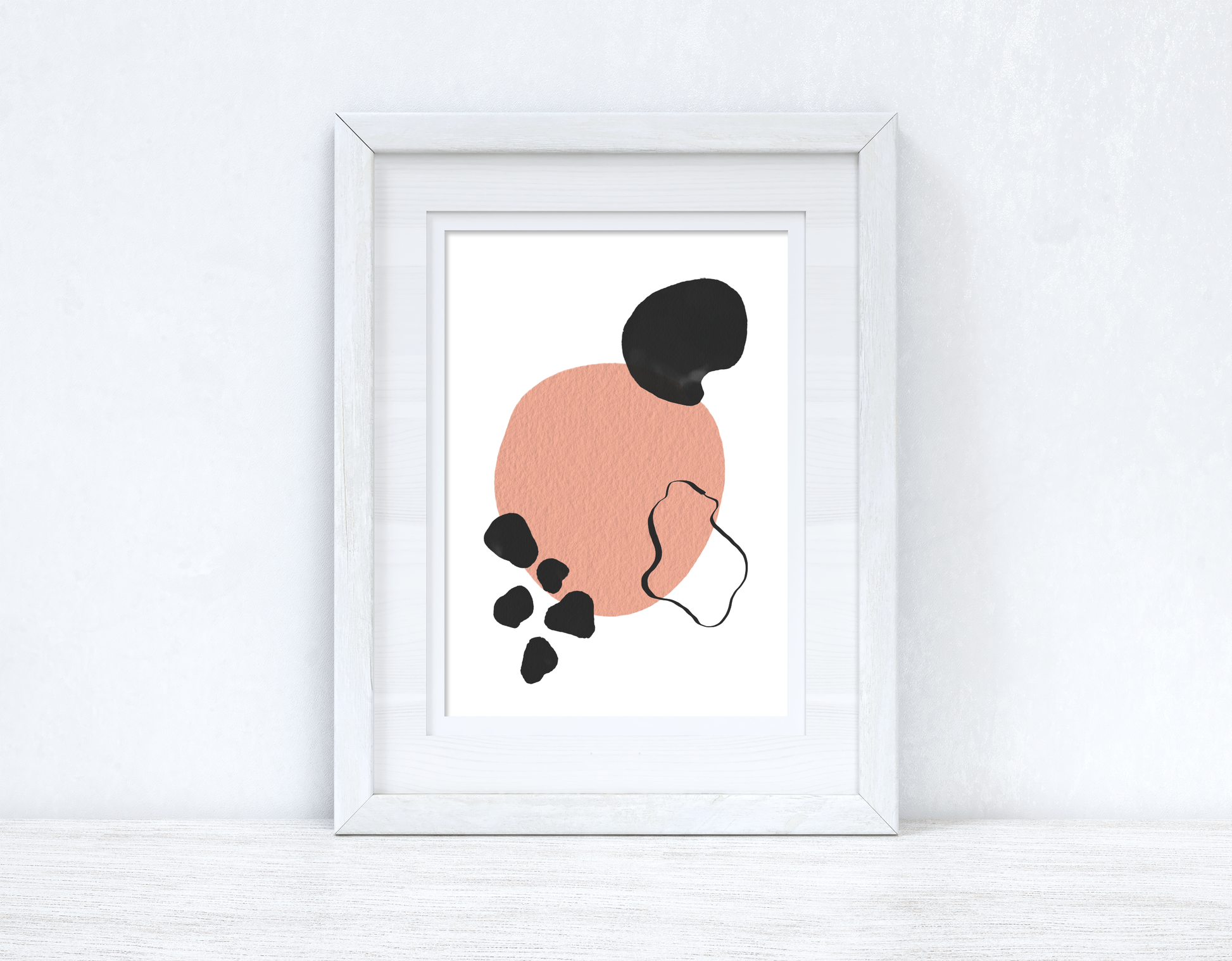 Peach Pink & Black Abstract 4 Colour Shapes Home Wall Decor Print