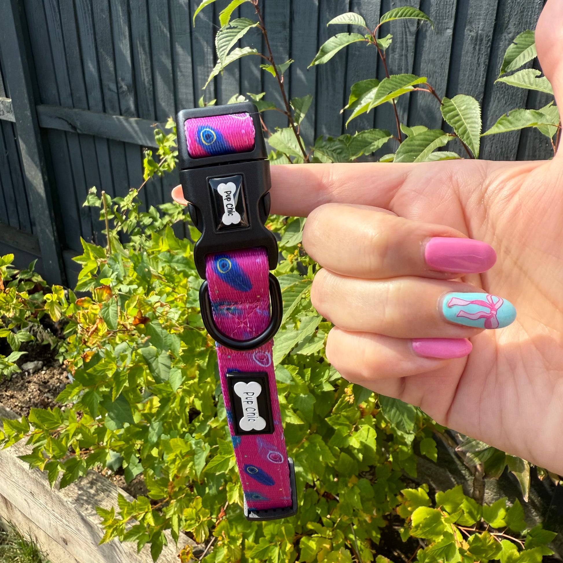 Bold, beautiful and built to last – our Peacock Power Dog Collars are designed to suit every size of dog, from tiny puppies to strong large breeds. Featuring a stunning teal base with vibrant peacock feather detailing, these adjustable dog collars combine Pup Chic style with everyday practicality.