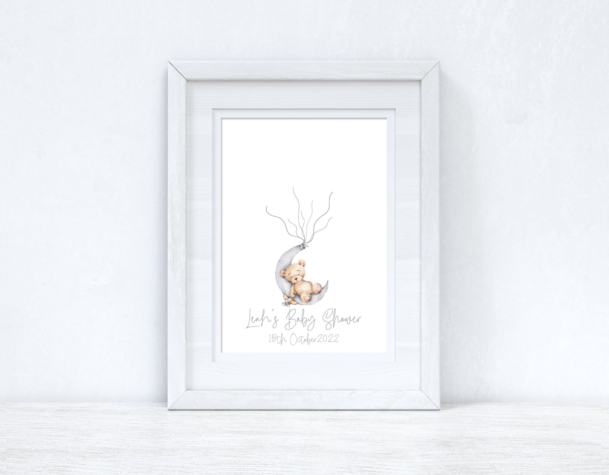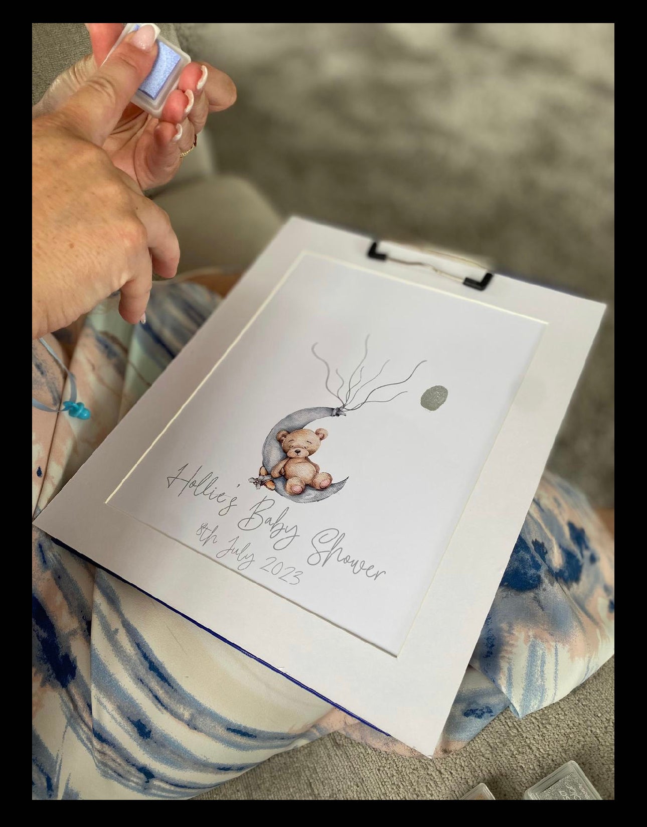 Personalised Baby Boy Girl Any Colour Wording Bear Baby Shower Finger Print Decor Print