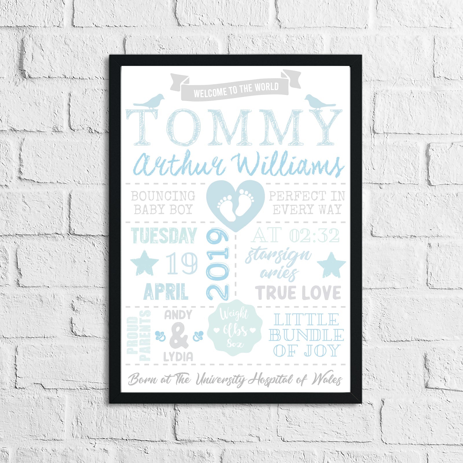 Personalised Baby Boy's Birth Blue Children's Bedroom Room Wall Decor Print