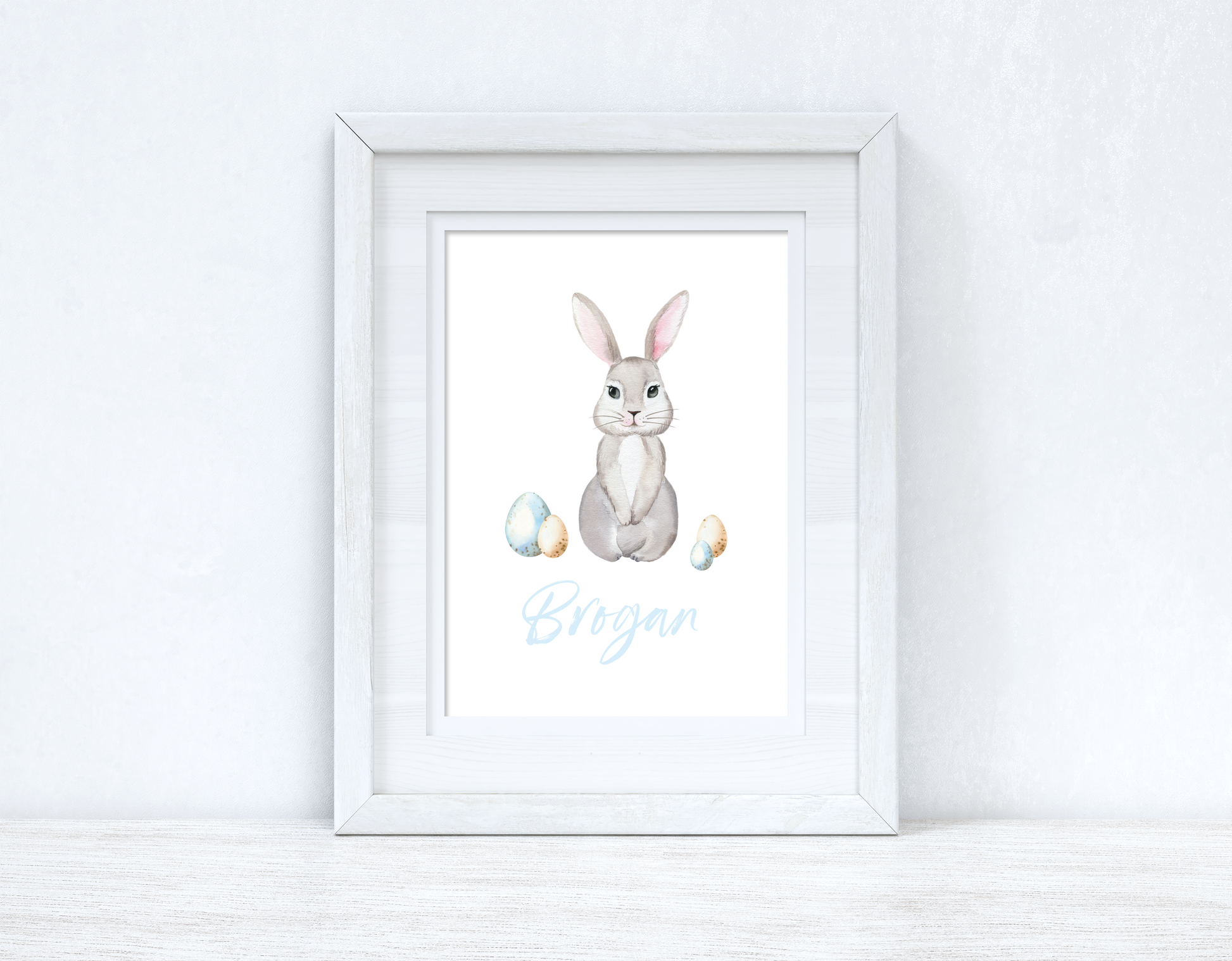 Personalised Blue Wording Bunny Eggs Easter Spring Seasonal Wall Home Decor Print
