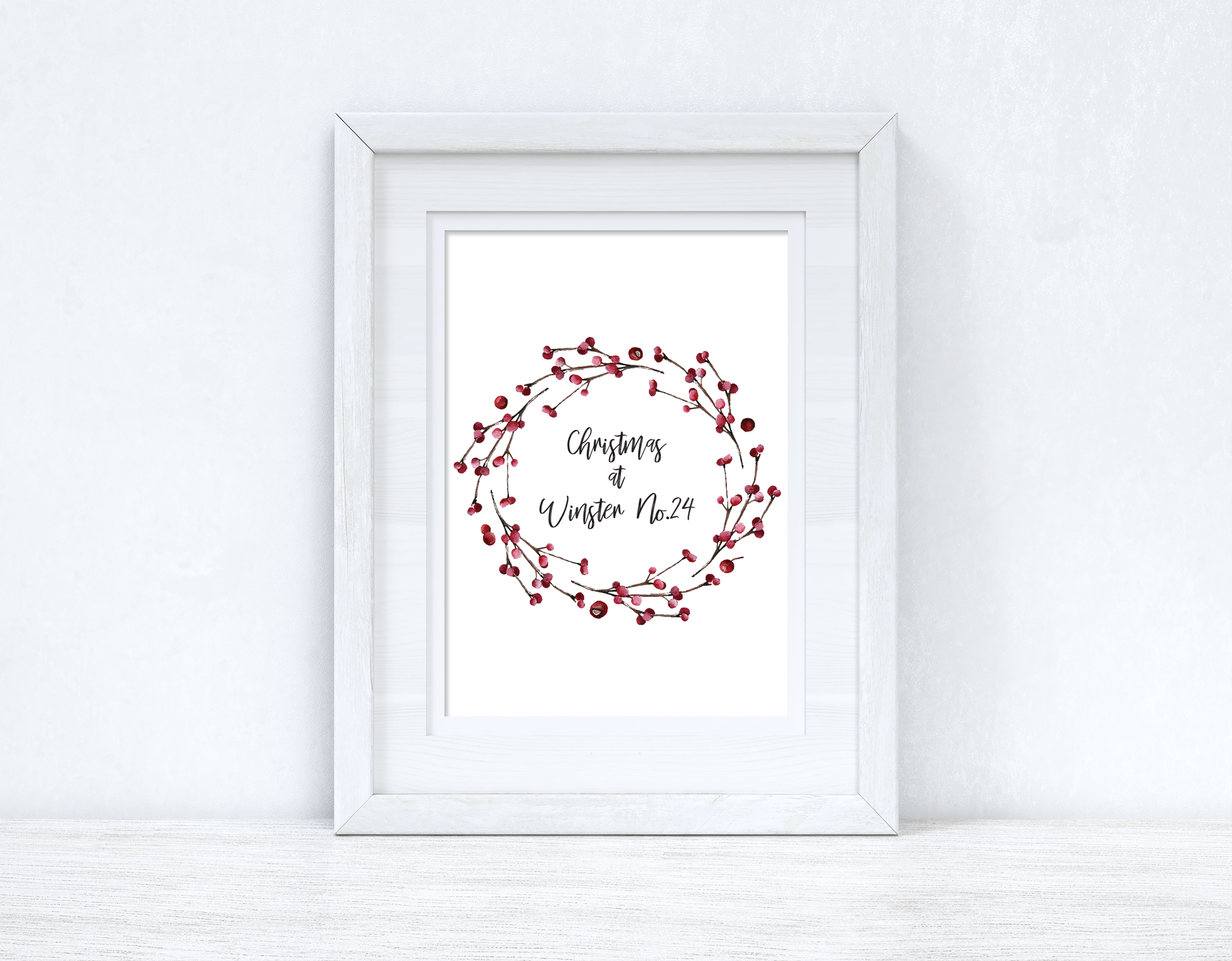Personalised Custom Wording Christmas At Berry Wreath Christmas Seasonal Wall Home Decor Print