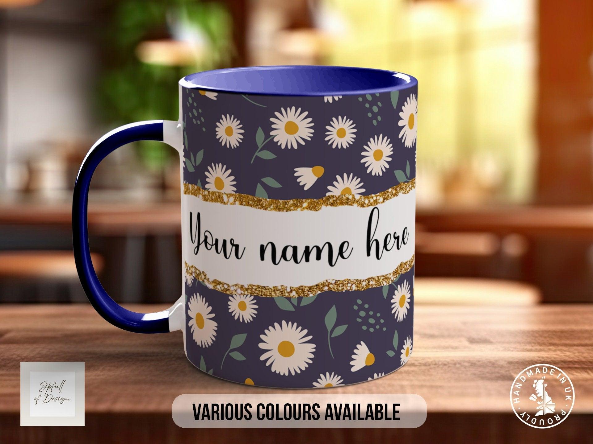Personalised Daisy Mug – Coloured Bone China Mug with Floral Design & Positive Quote