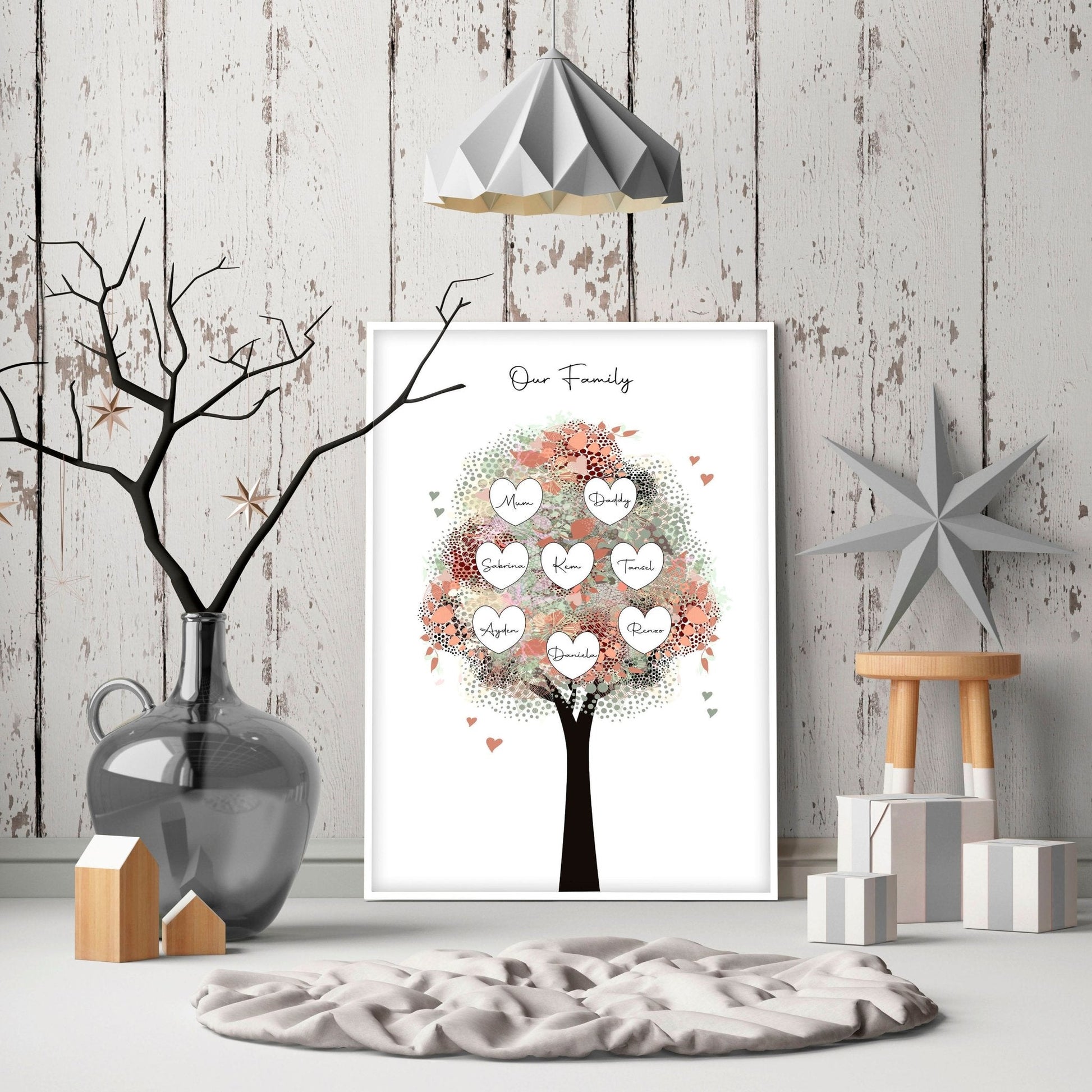 Decorate your Living room with this Family wall art print. Display 2-3 generations ( 3-15 names) of your family history with this beautiful family tree!