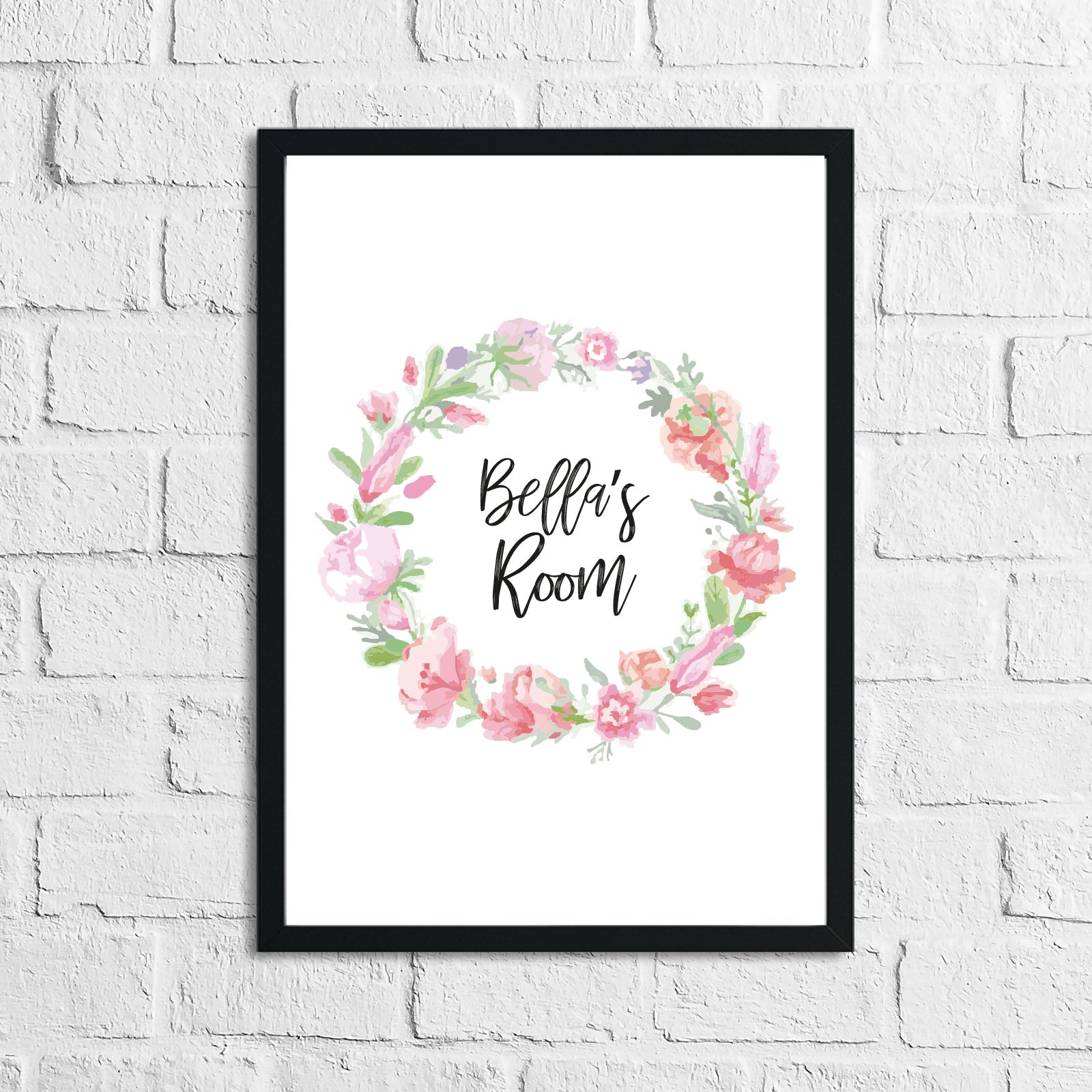 Personalised Floral Wreath Name Children's Room Wall Decor Print