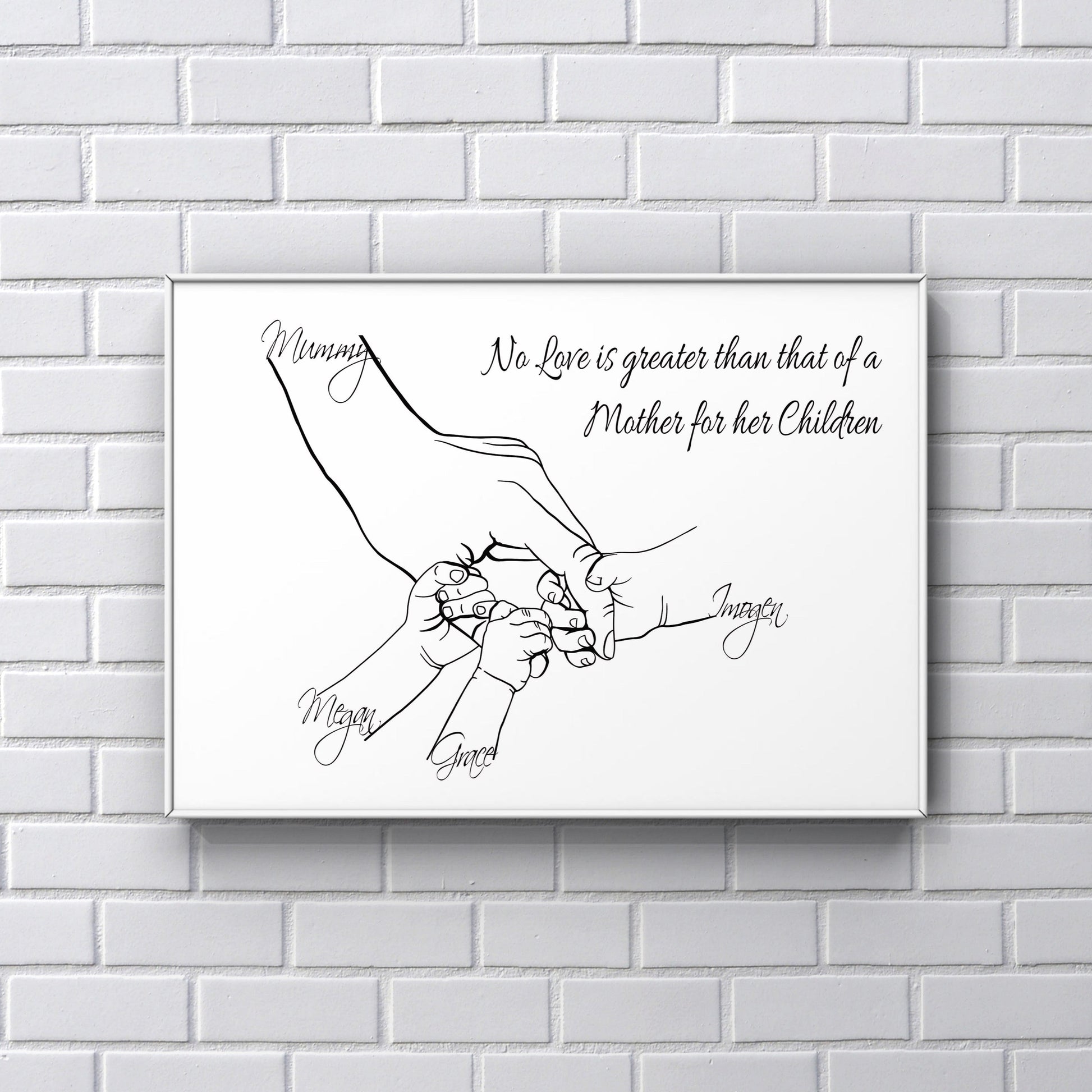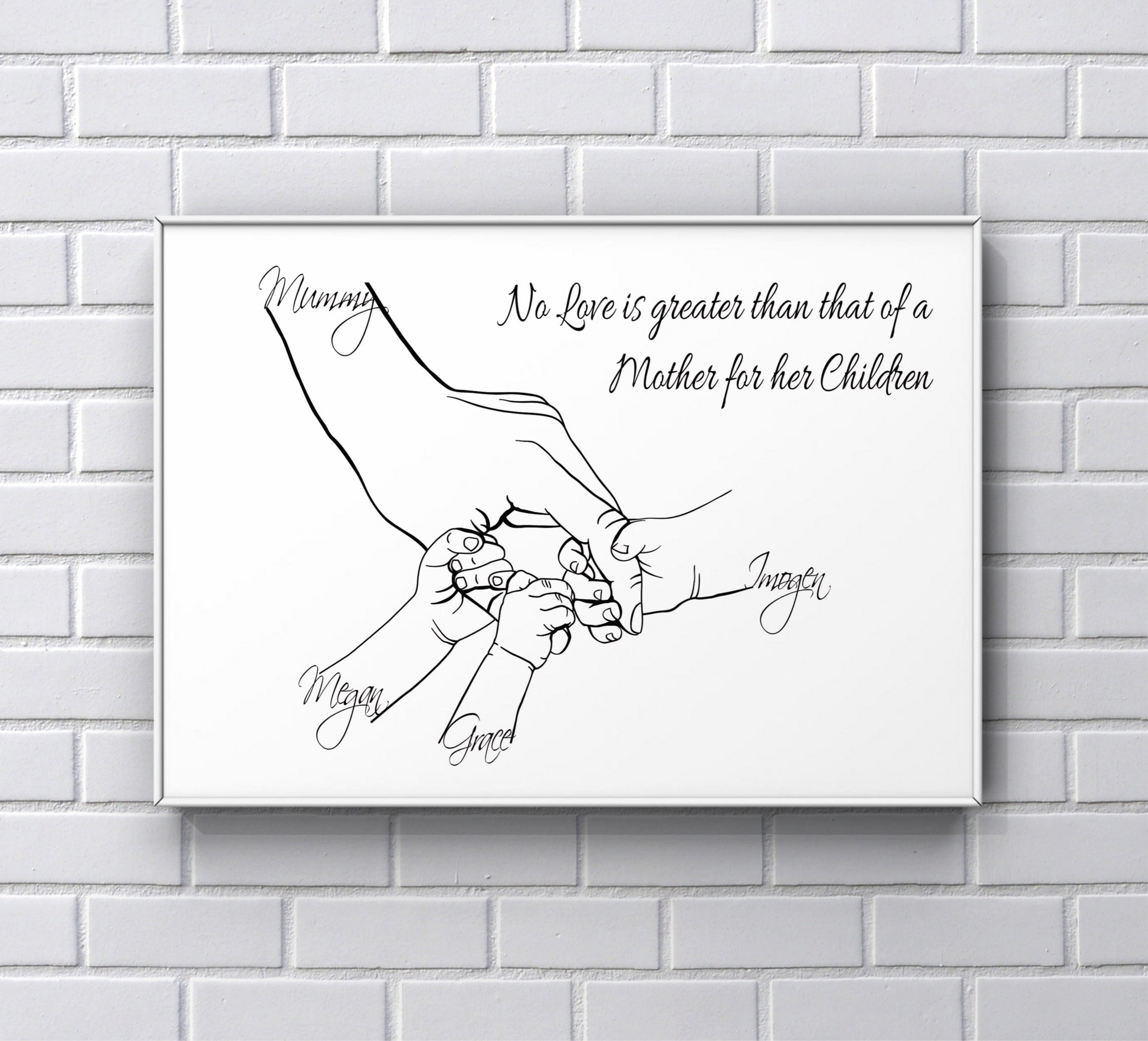 Personalised Mummy hand 3 children A4 Print UNFRAMED