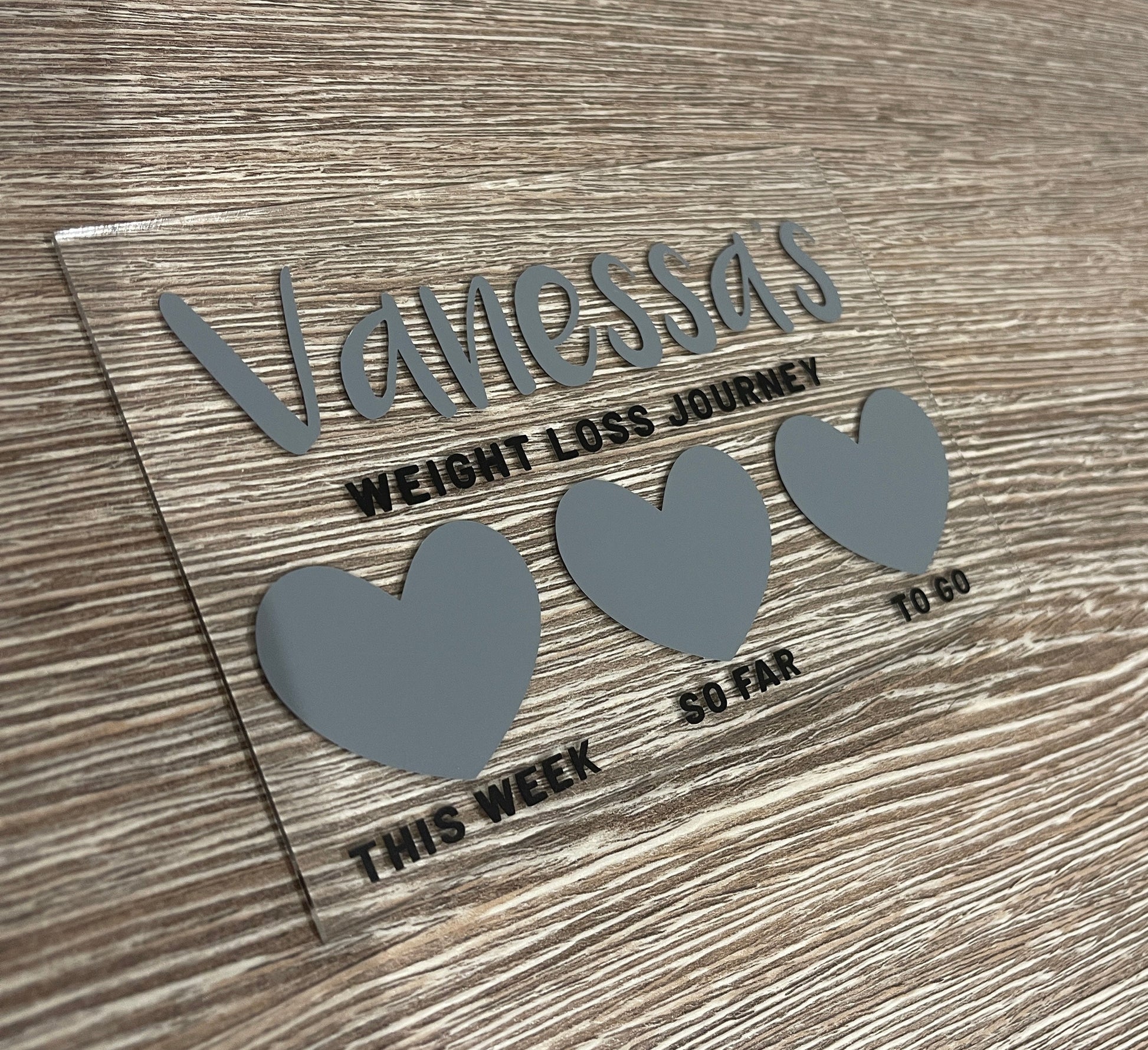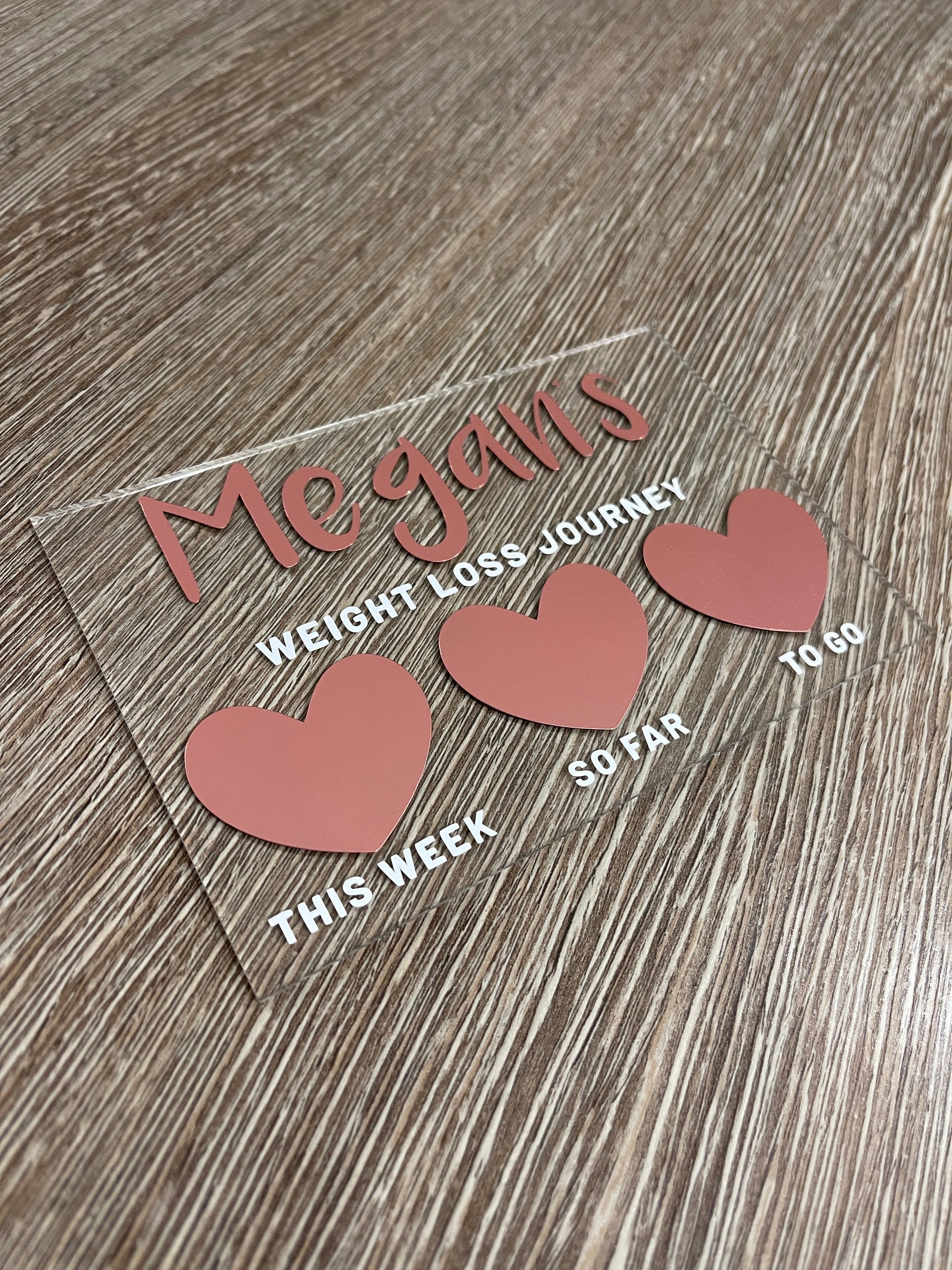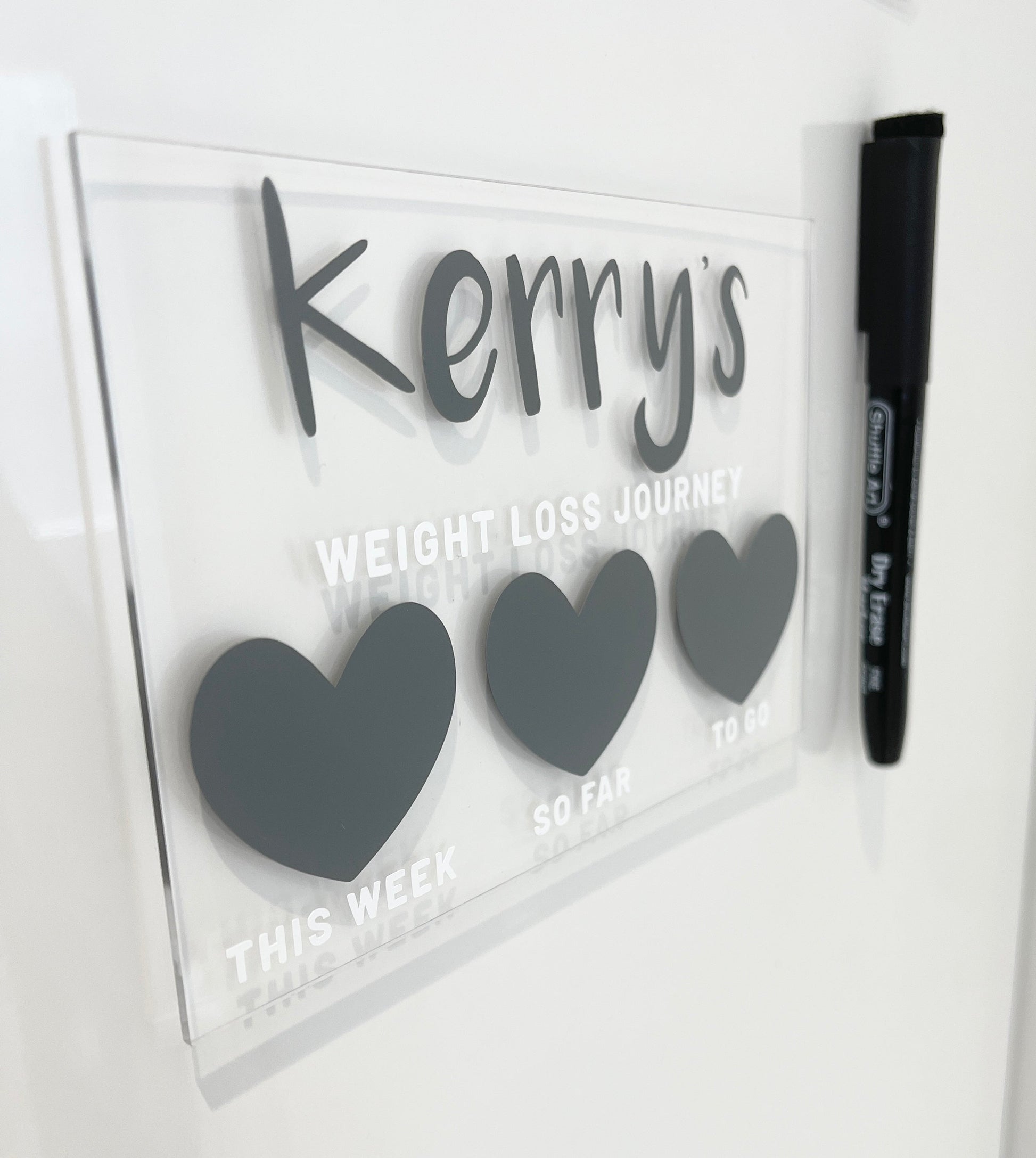 Personalised Name 10x15cm Magnetic Clear Acrylic Heart Whiteboard Weight Loss Journey Sign Plaque & Drywipe Pen