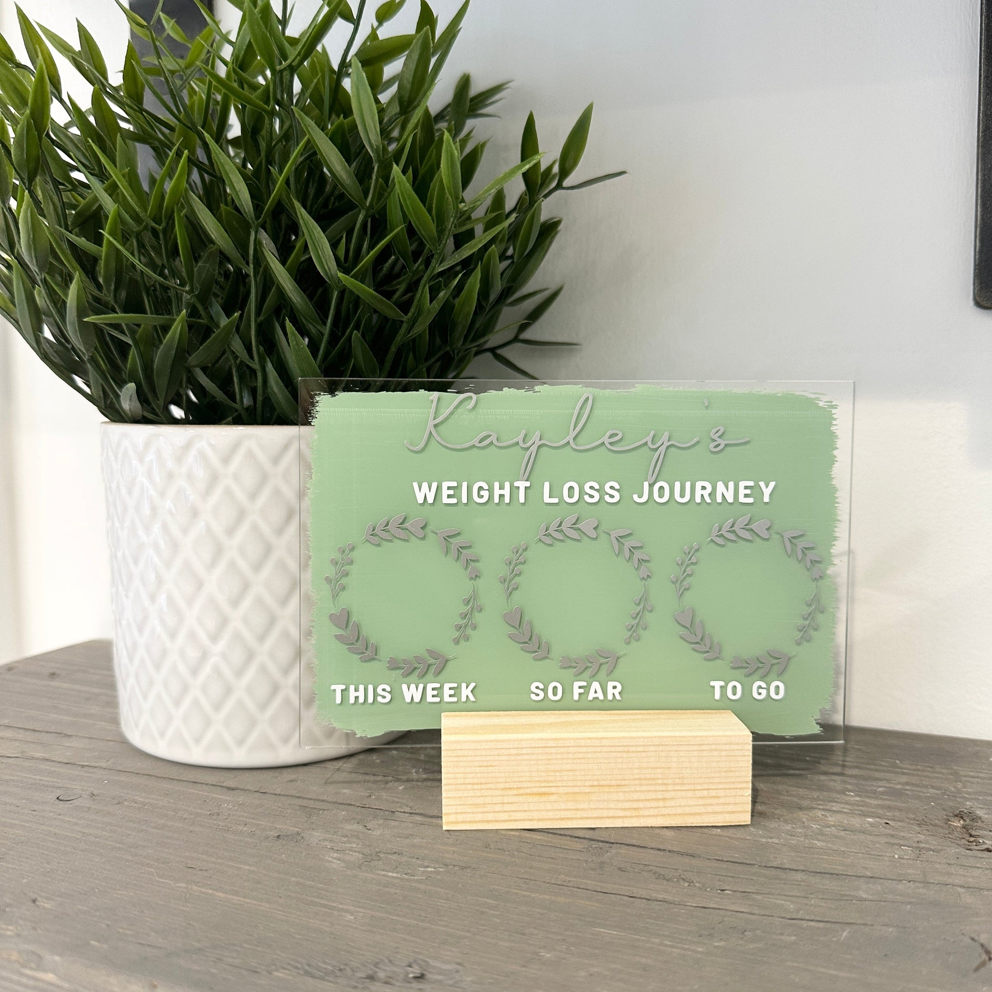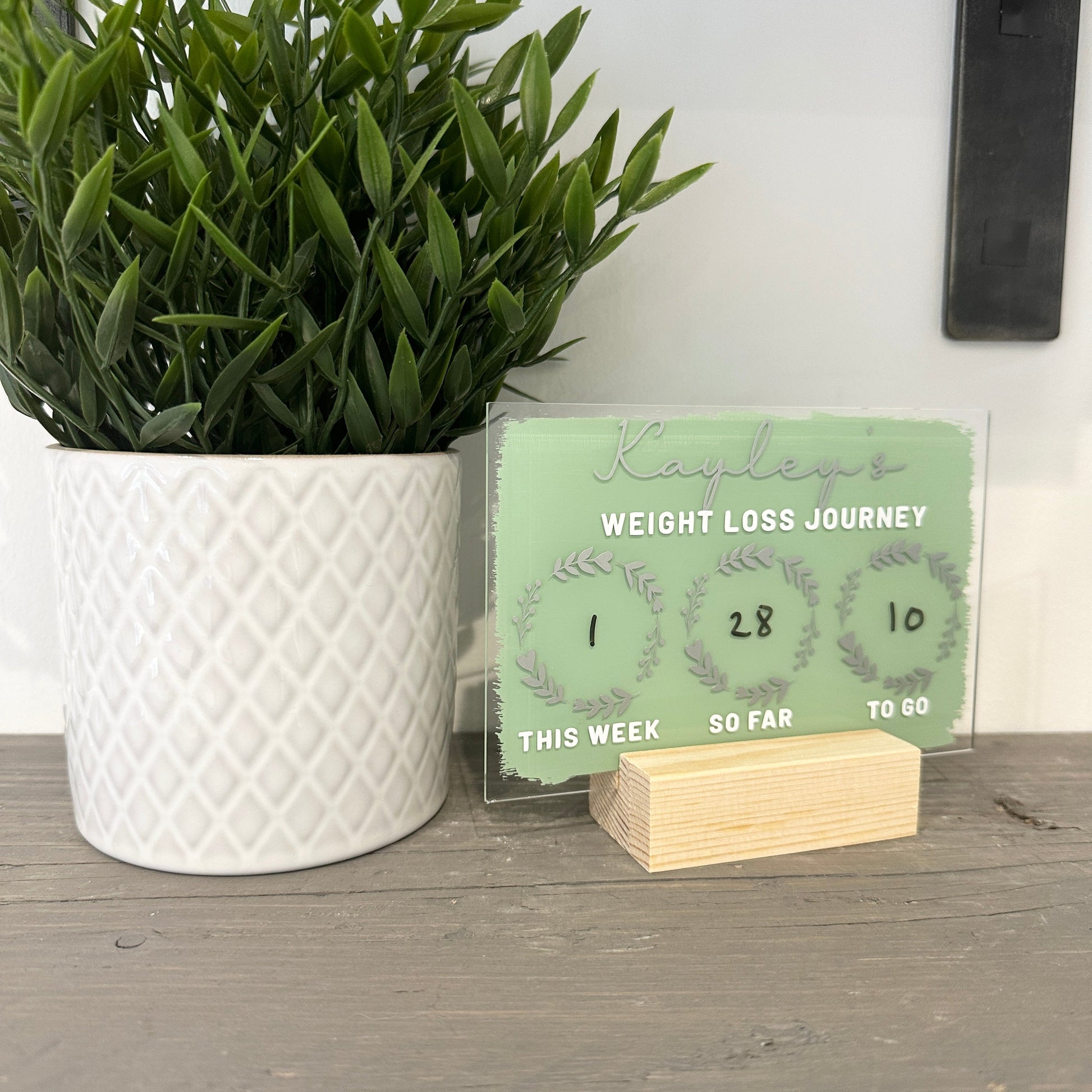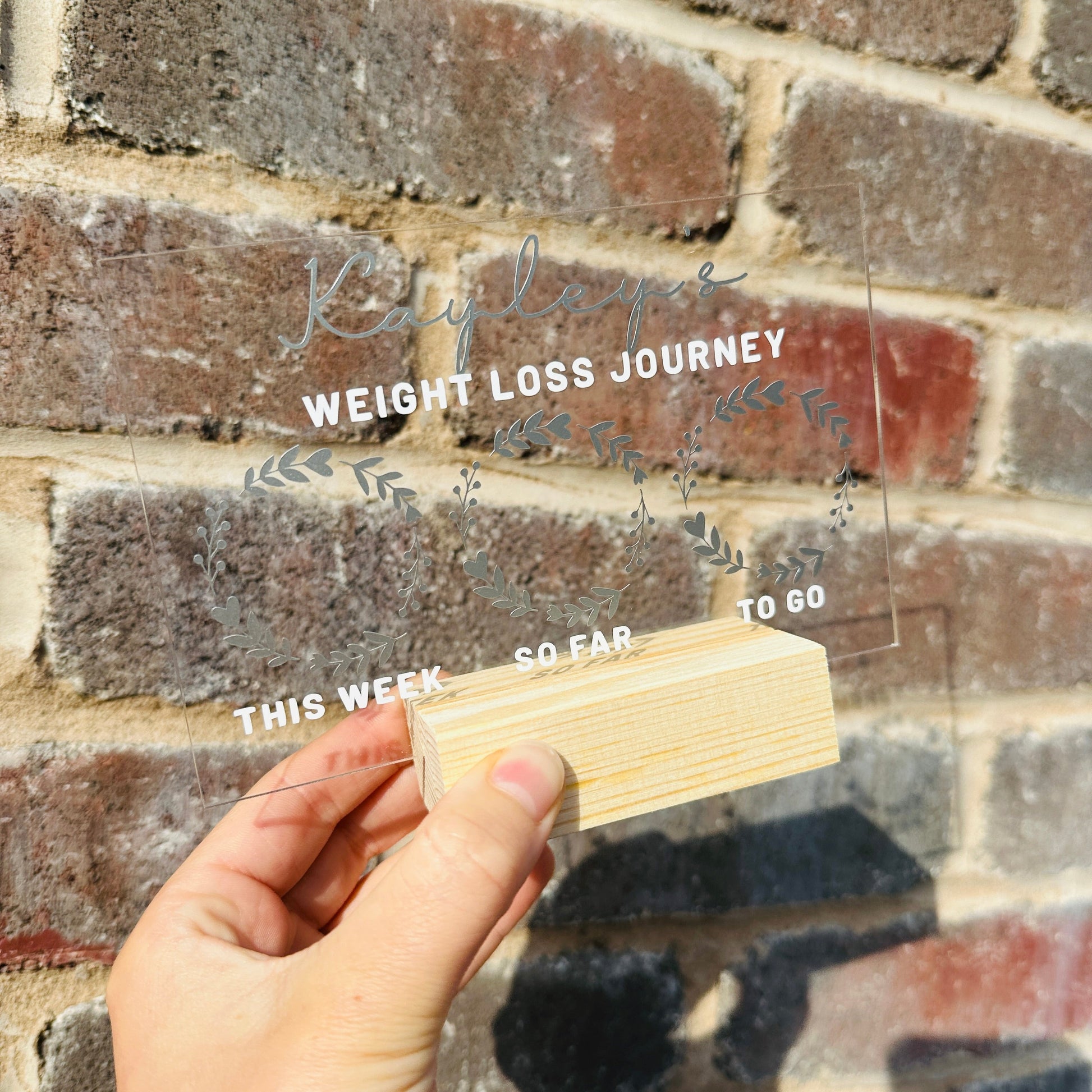 Personalised Name Wreath 10x15cm Clear Acrylic Painted Weight Loss Journey Slimming Couting Tracker Sign With Wooden Base & Drywipe Pen