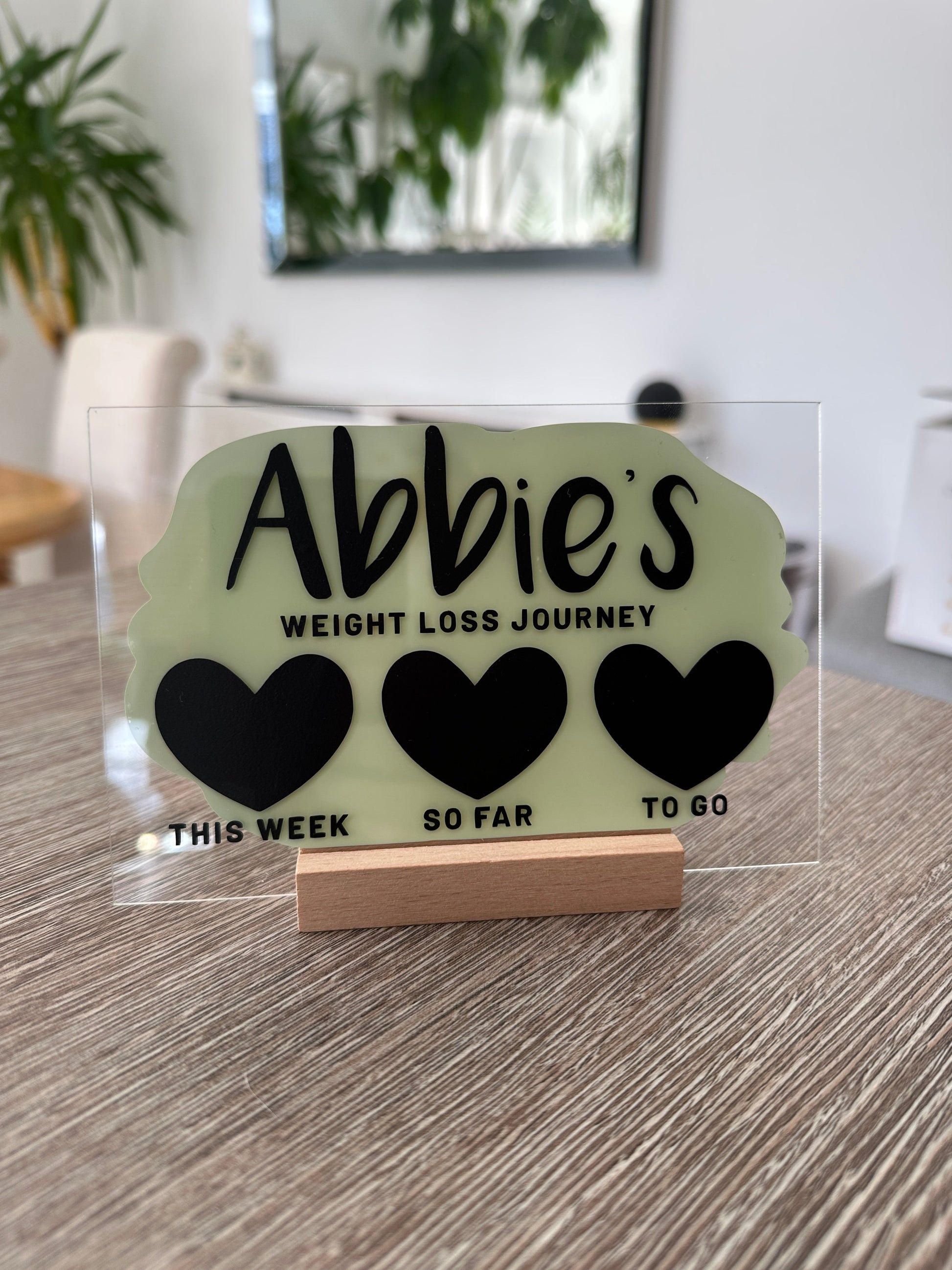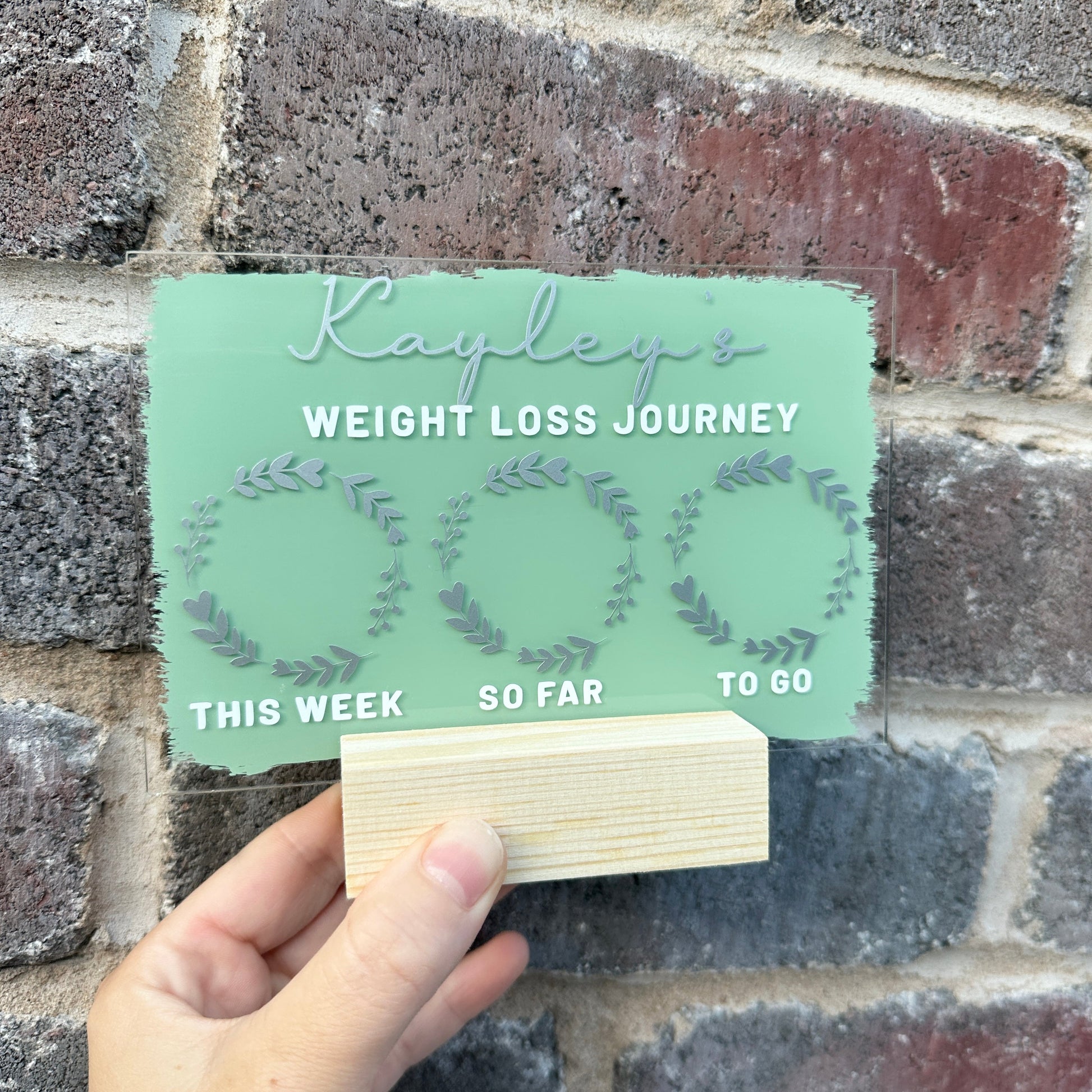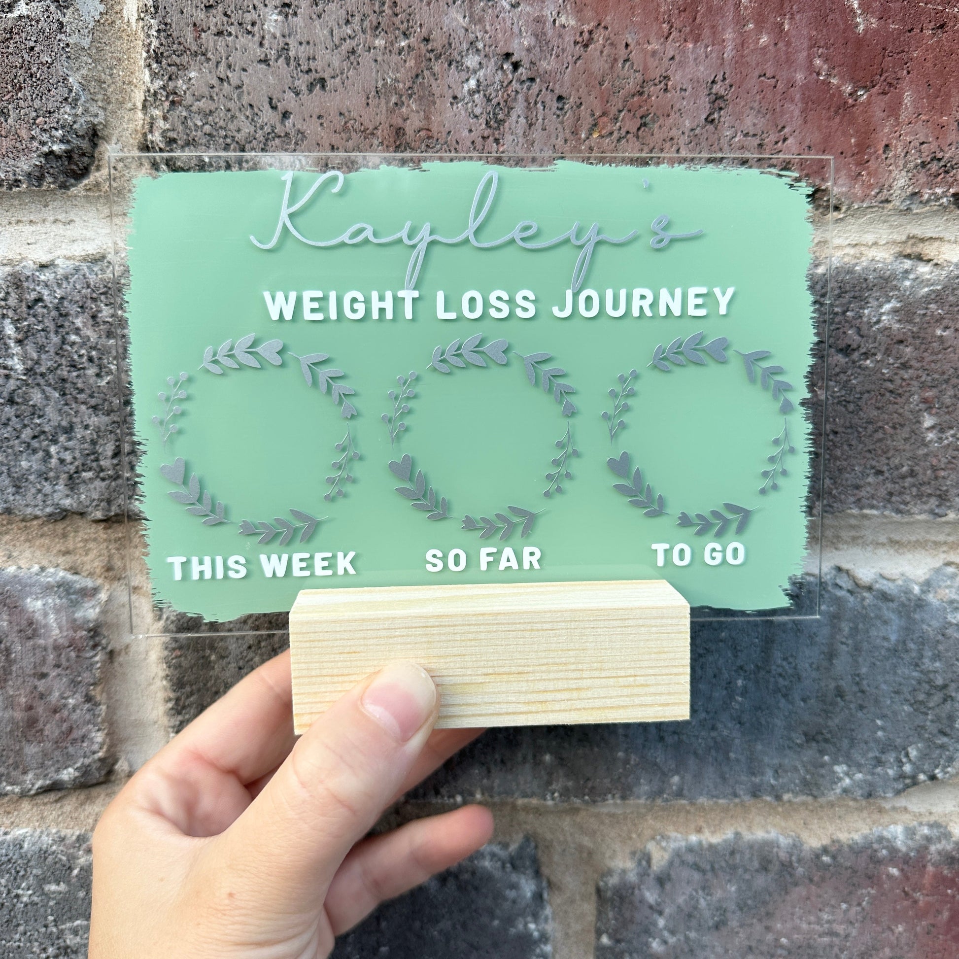 Personalised Name Wreath 10x15cm Clear Acrylic Painted Weight Loss Journey Slimming Couting Tracker Sign With Wooden Base & Drywipe Pen