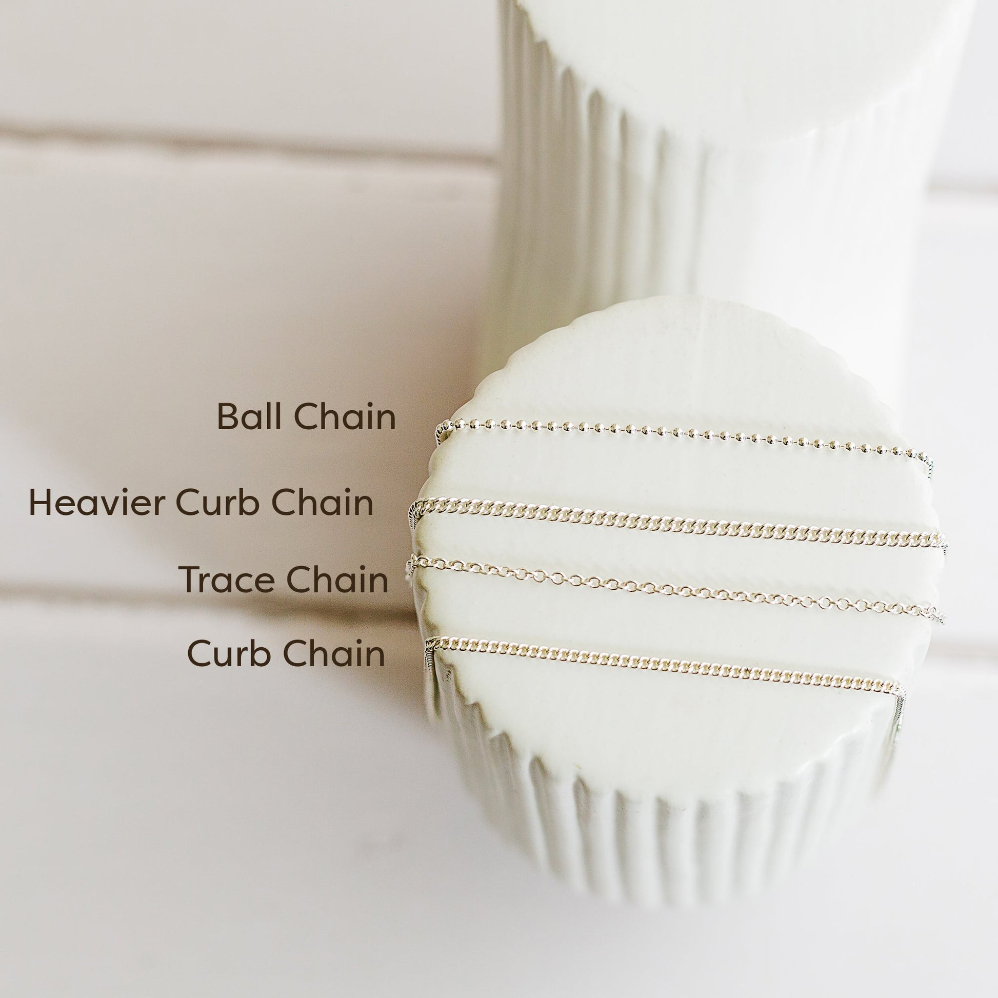 Solid silver chains measure 1.1mm thick and comes in a choice of chain lengths. Heavier curb chains measure 2.1mm thick.