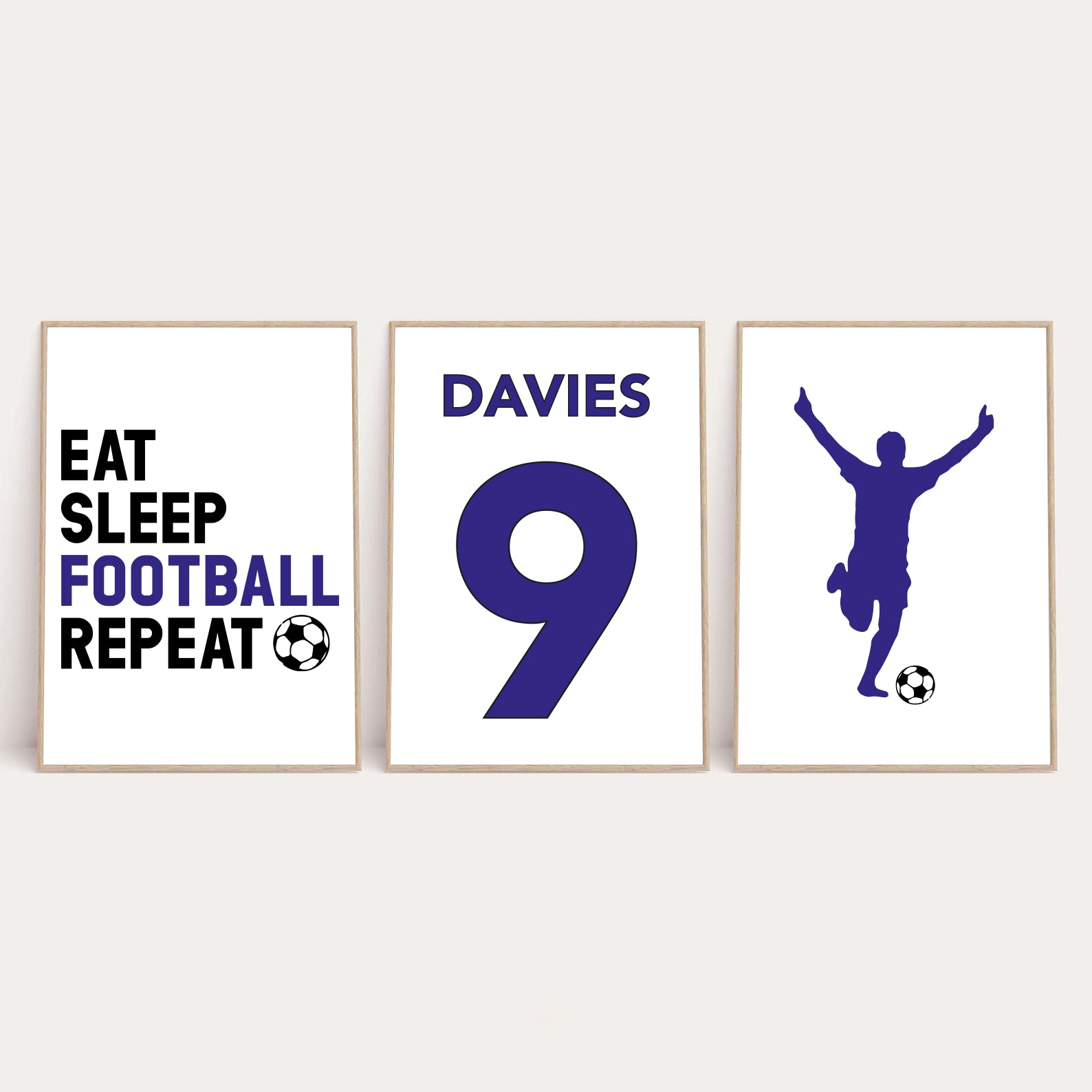 Personalised Surname Eat Sleep Football Repeat Children's Wall Decor Set Of 3 Prints (Any Colour/No.)