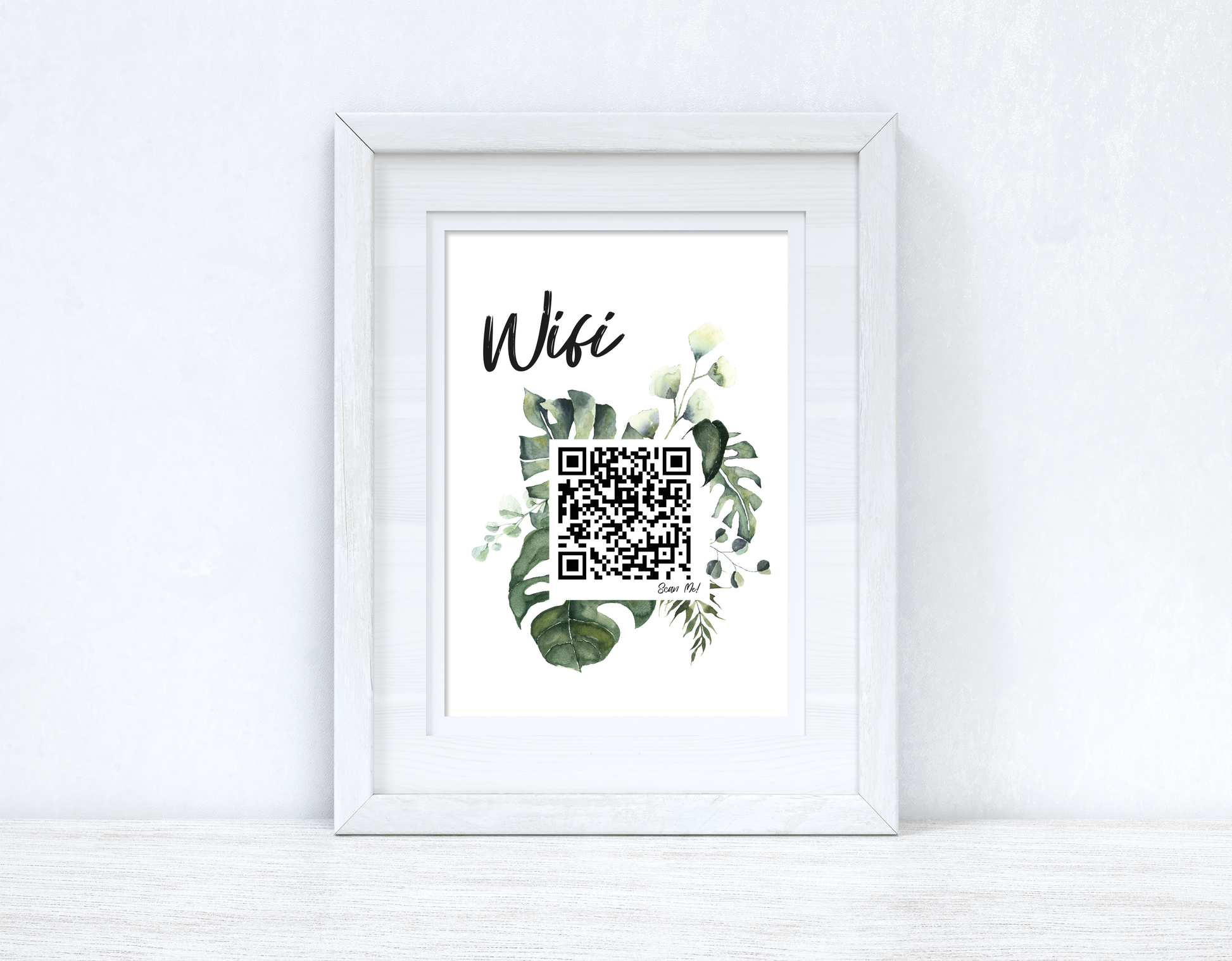 Personalised Wifi Greenery Scan Me! Wifi QR Scan Home Wall Decor Print