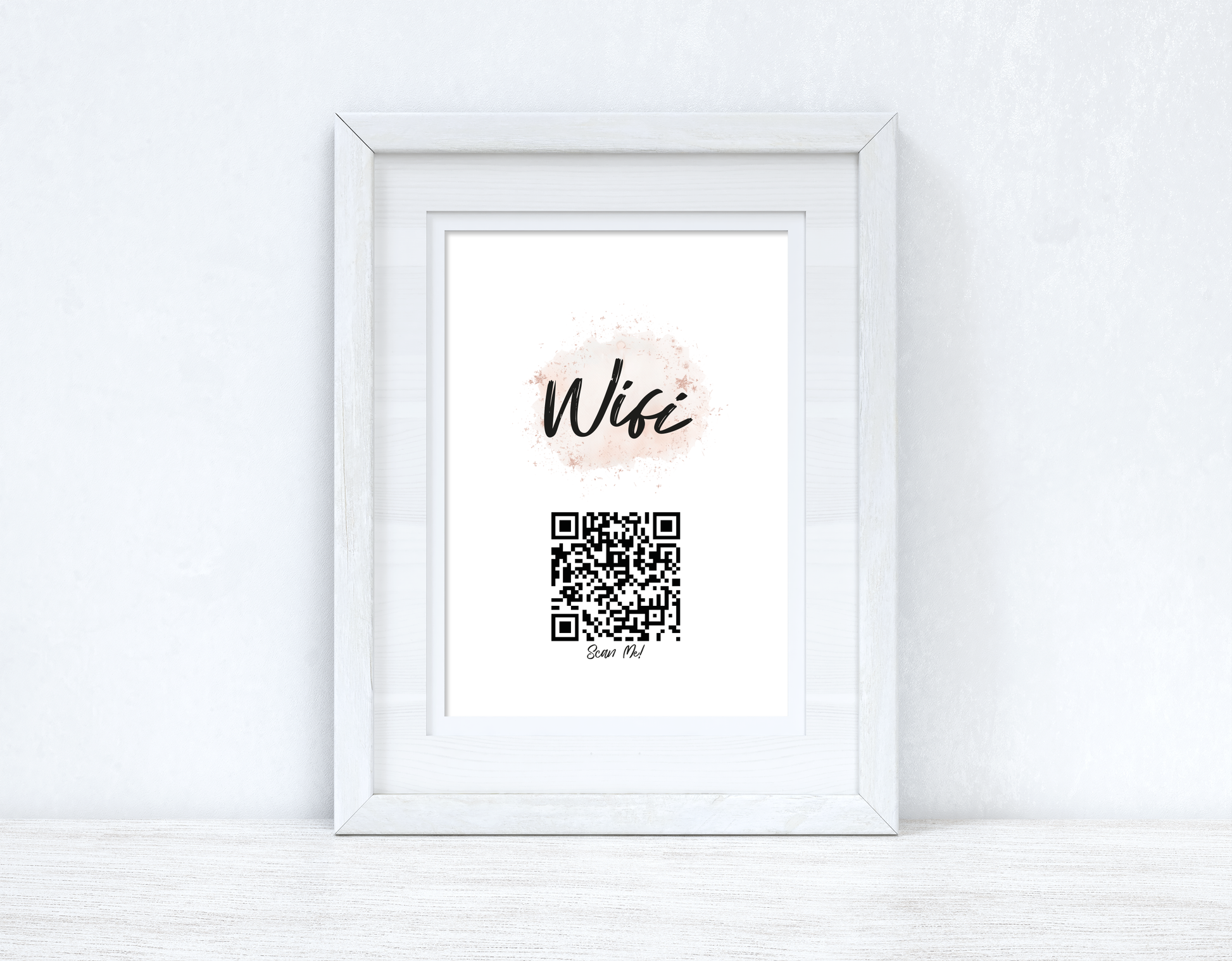 Personalised Wifi Rose Gold Pink Splatter Scan Me! Wifi QR Scan Home Wall Decor Print