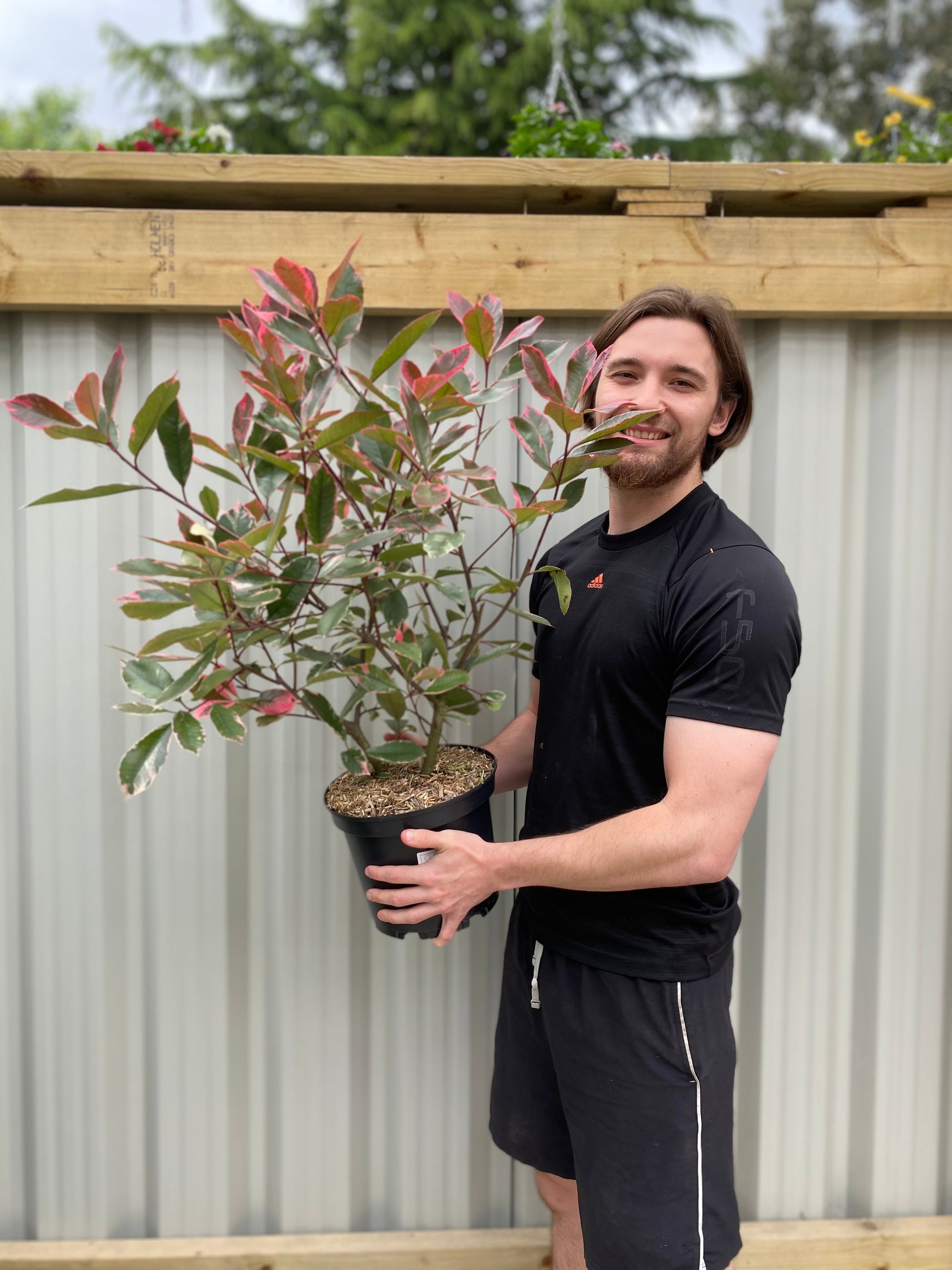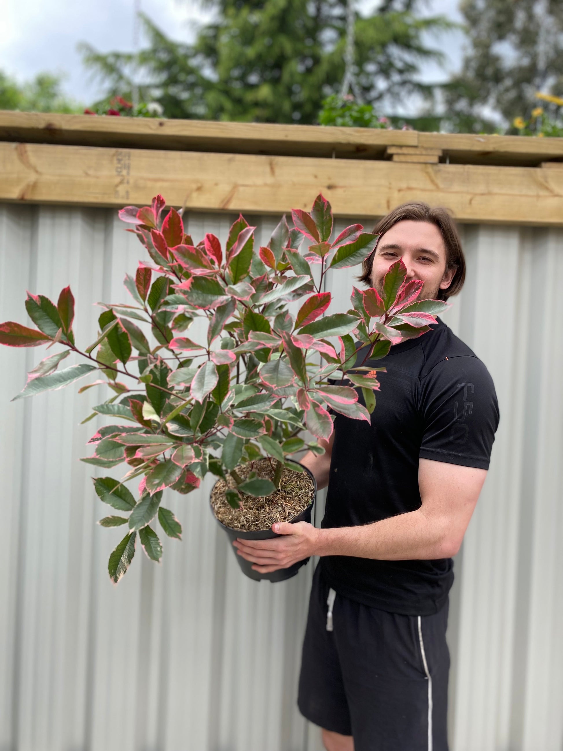 Photinias are relatively low maintenance plants once established. Water thoroughly throughout the growing season until established. If you are growing your Photinia as a hedge, you can trim the plant 2-3 times a year from late June through to Mid August. Feed annually with some well rotted compost/manure.