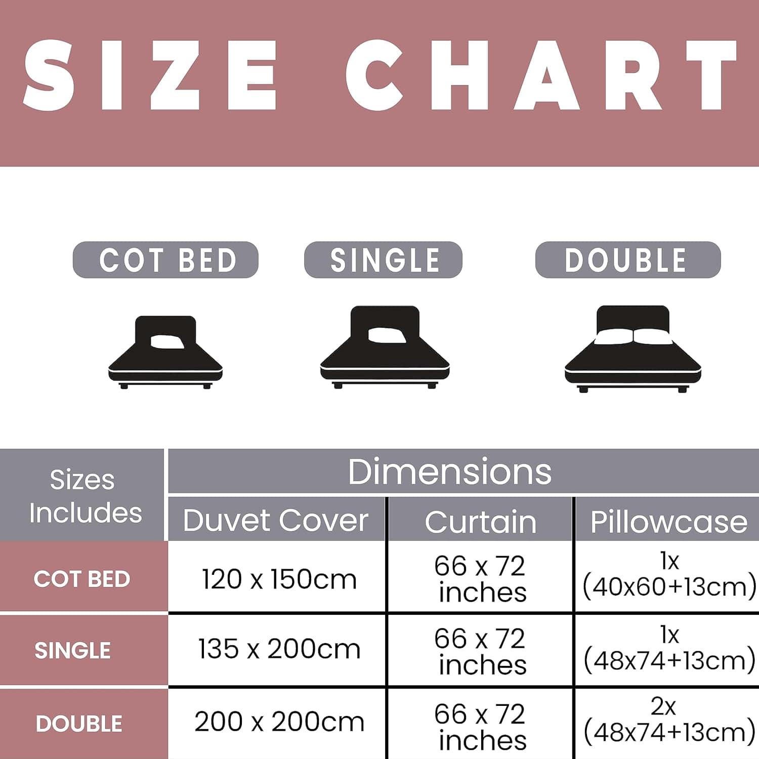 - Single Duvet Set: 135x200cm + 1 Pillowcase (48x74+13cm)