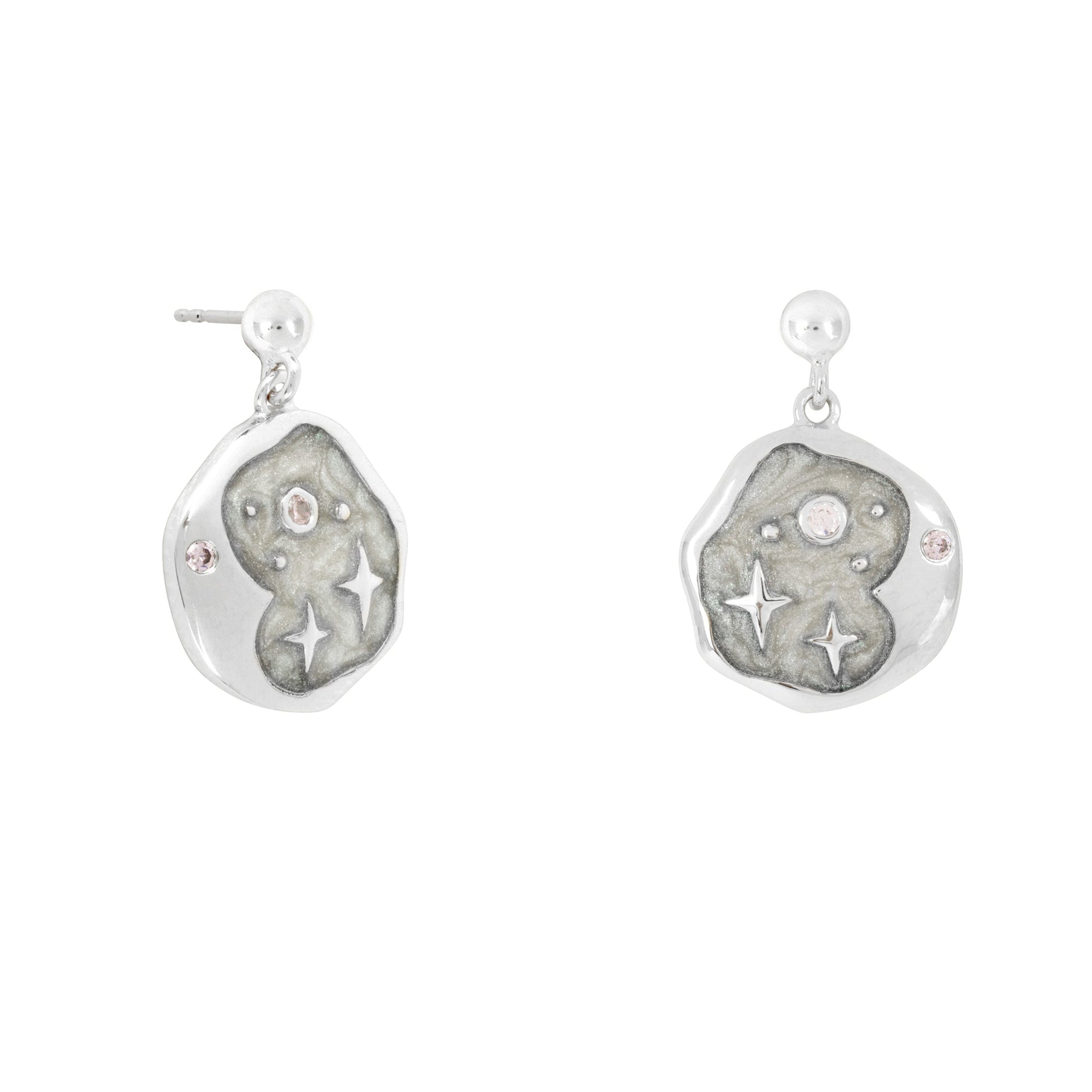 Pink Opal and Pearl Enamel Starry Night Studs Silver