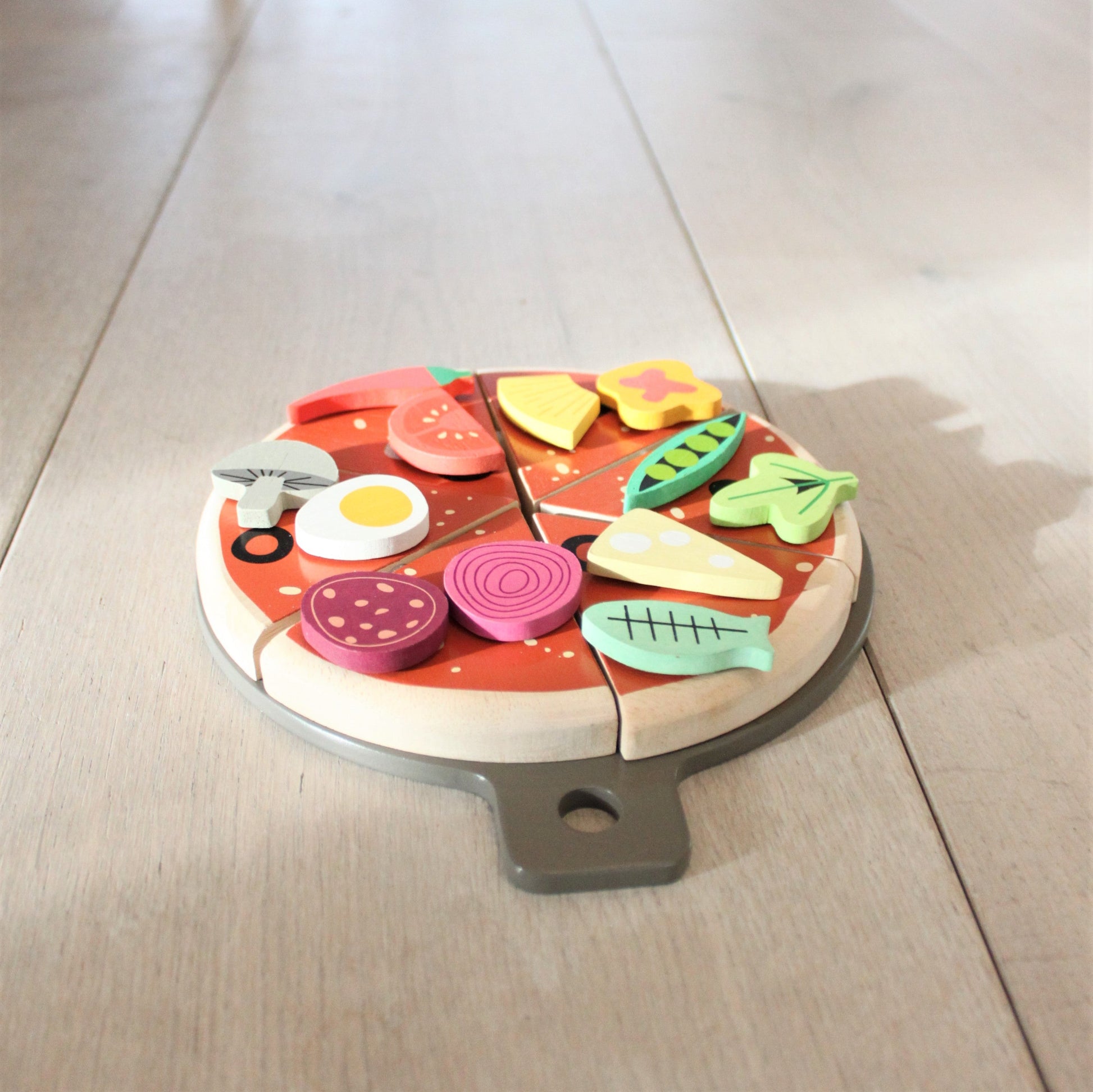 Now you can create your own and get delivery in our very own Tender Leaf illustrated pizza box. Pre-cut into 6 slices and arranged on a pizza tray, have fun arranging twelve different toppings. All the toppings are inter-changeable and held in place by a small velcro spot.