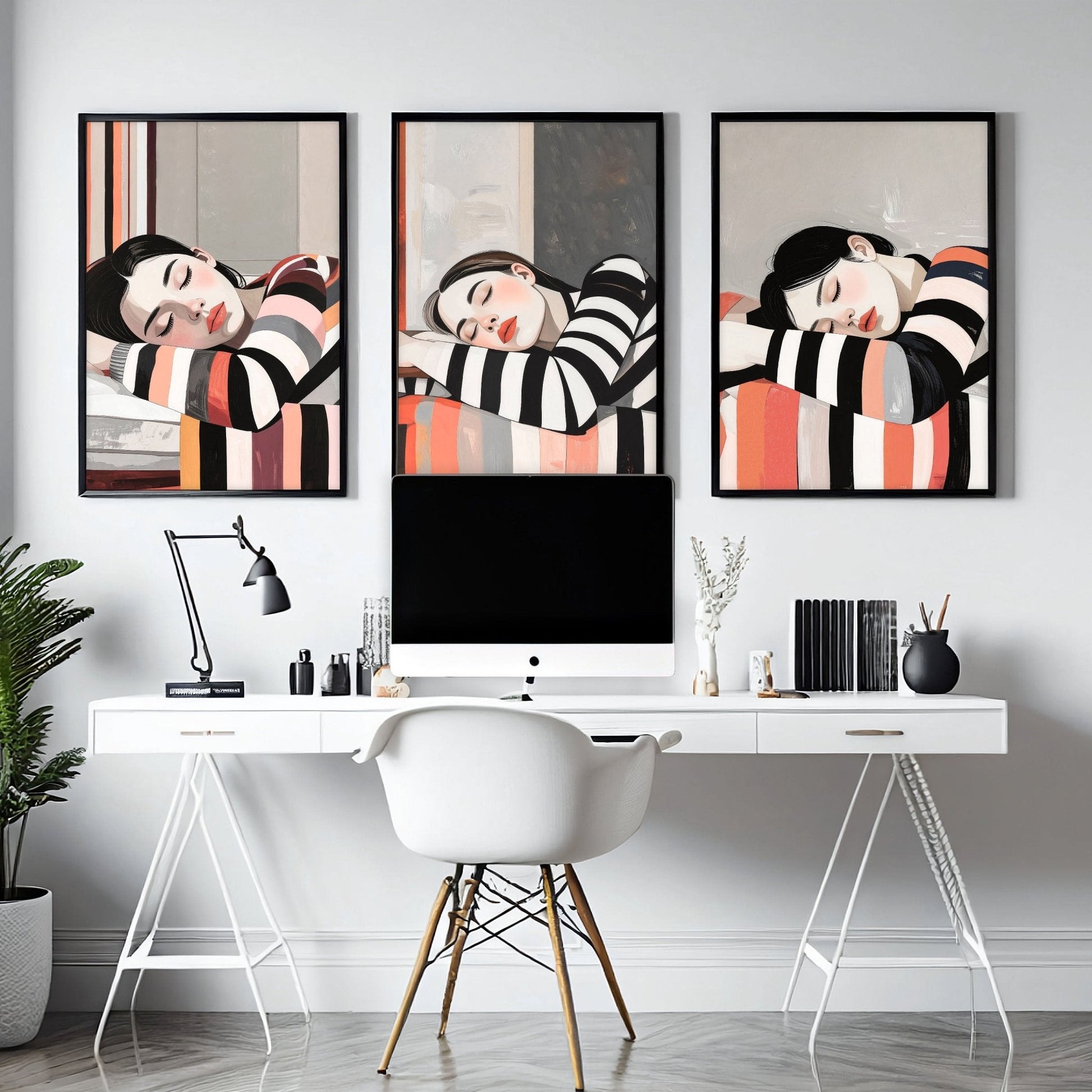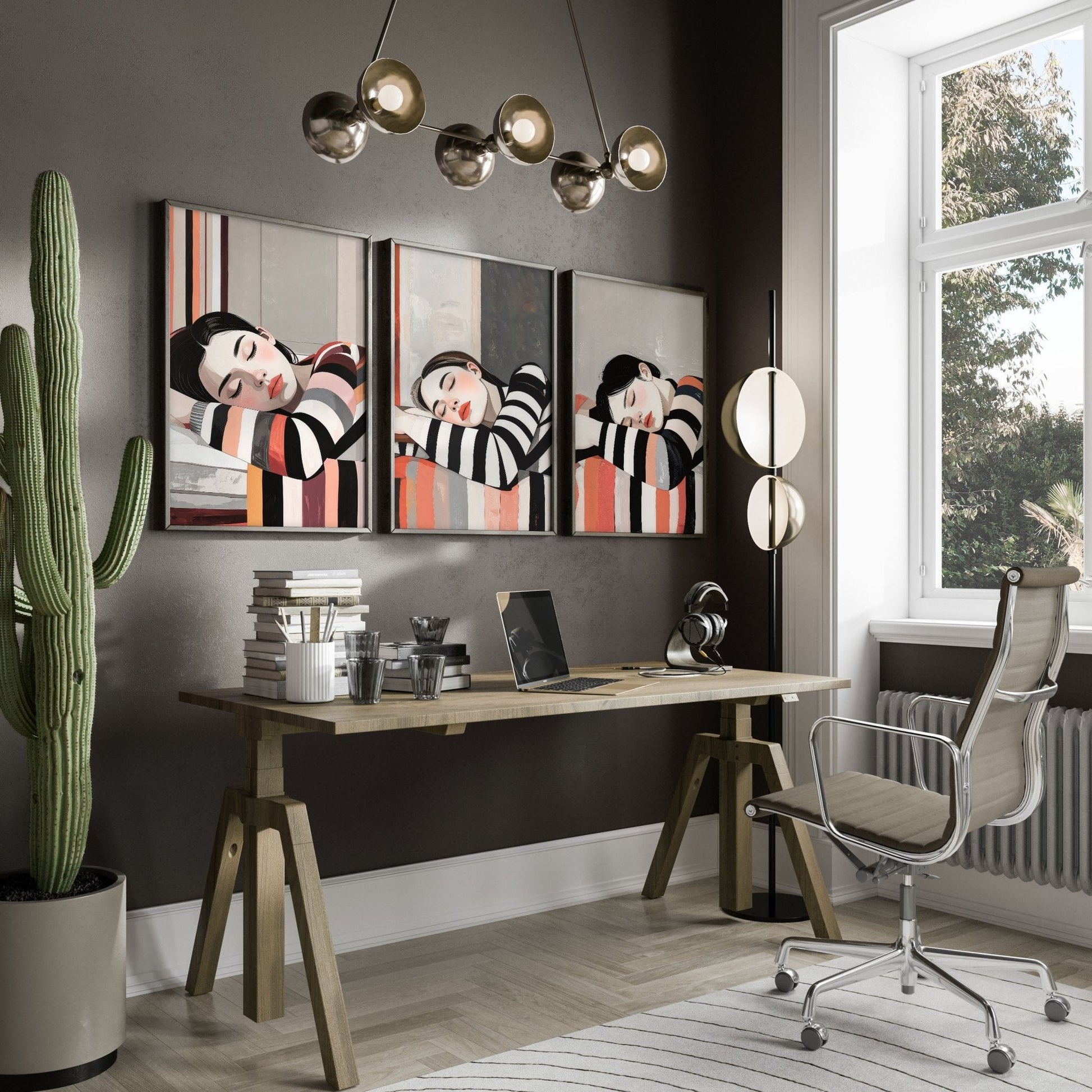 Moreover, the beauty of these Set of 3 Boho Women Wall art Prints lies not just in their aesthetic appeal but also in their versatility. Whether you are a minimalist seeking a statement piece or someone who loves eclectic, colourful arrangements, these prints adapt effortlessly. The dynamic colour palette – rich, bold, and yet soothing – helps spark imagination, making your office an oasis of inspiration. In the world of decor, the right wall art can transform not only the look but also the feel of a room, turning a bland office into a lively hub of creativity.