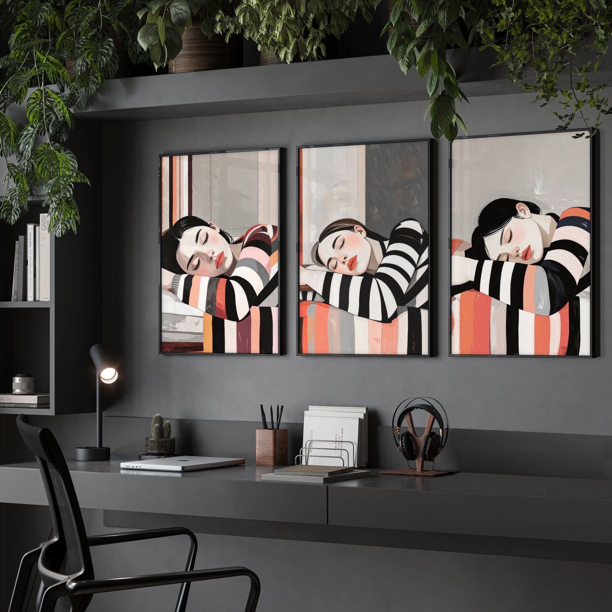- You will receive a Set of 3 Boho Women Wall art Prints for your office wall art.