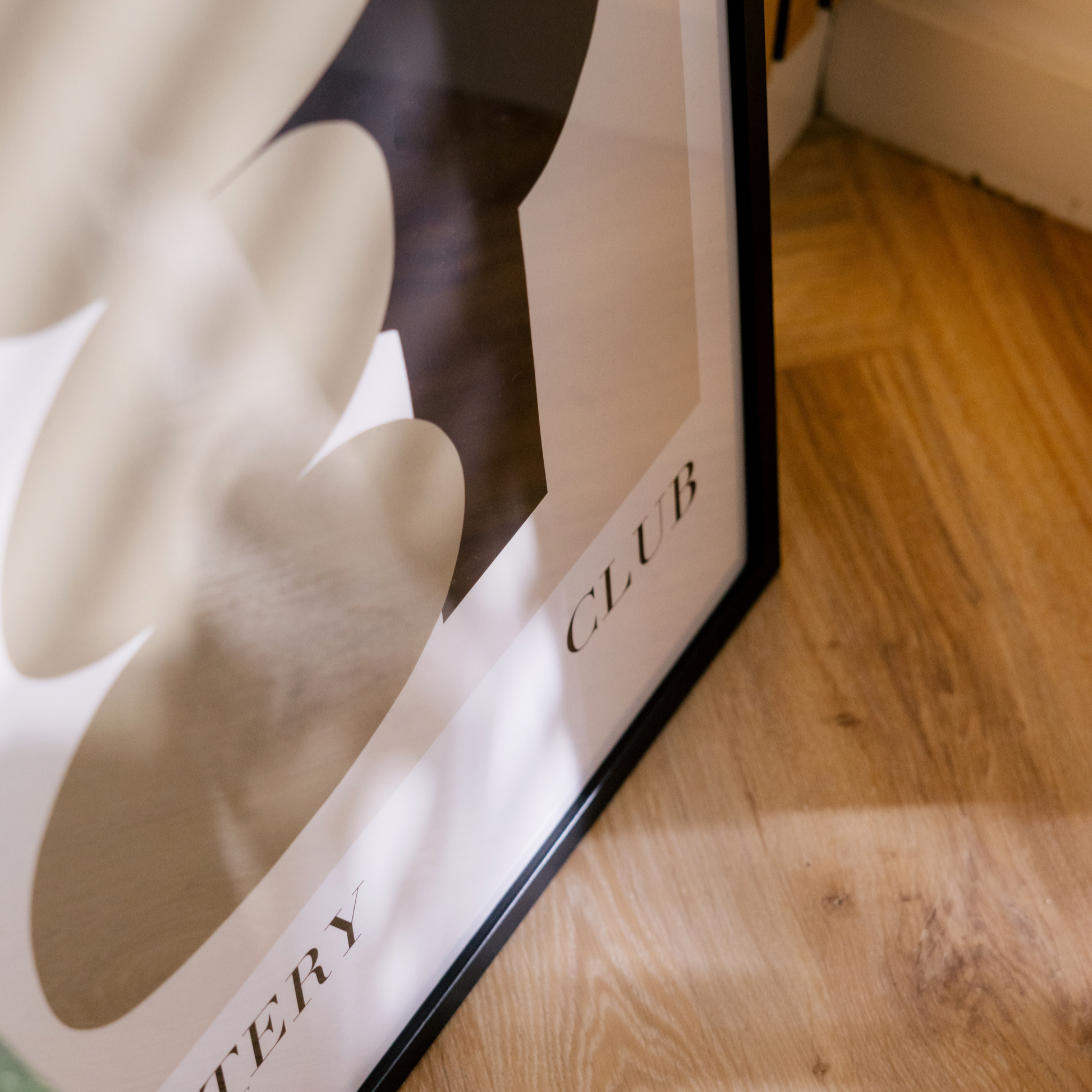 Transform your space with the sleek and modern Pottery Club Abstract Print. Featuring bold olive and black abstract shapes and elegant pottery club wording, this stunning piece will add a touch of sophistication to any room. Elevate your home decor with this unique and stylish artwork.