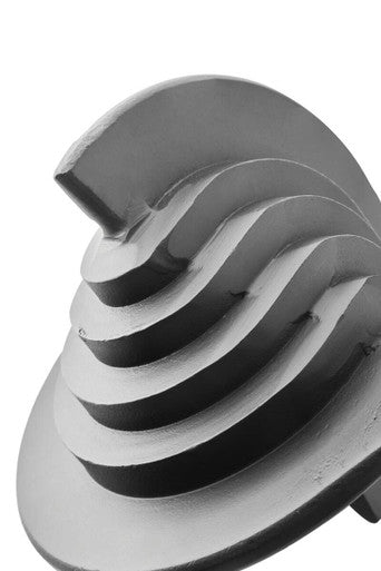 The layered form catches light and shadow, turning a simple shape into an engaging work of art. Its monochrome palette pairs seamlessly with neutral tones, metallics, and wood surfaces, making it versatile for many decor themes.