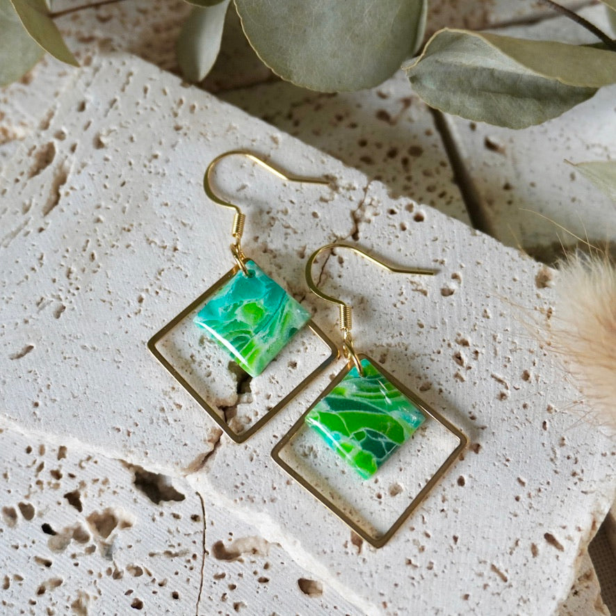 Materials - Polymer clay, clear UV resin and stainless steel fixings with optional rubber backs. These earrings will be provided on an Aether & Nox branded backing card