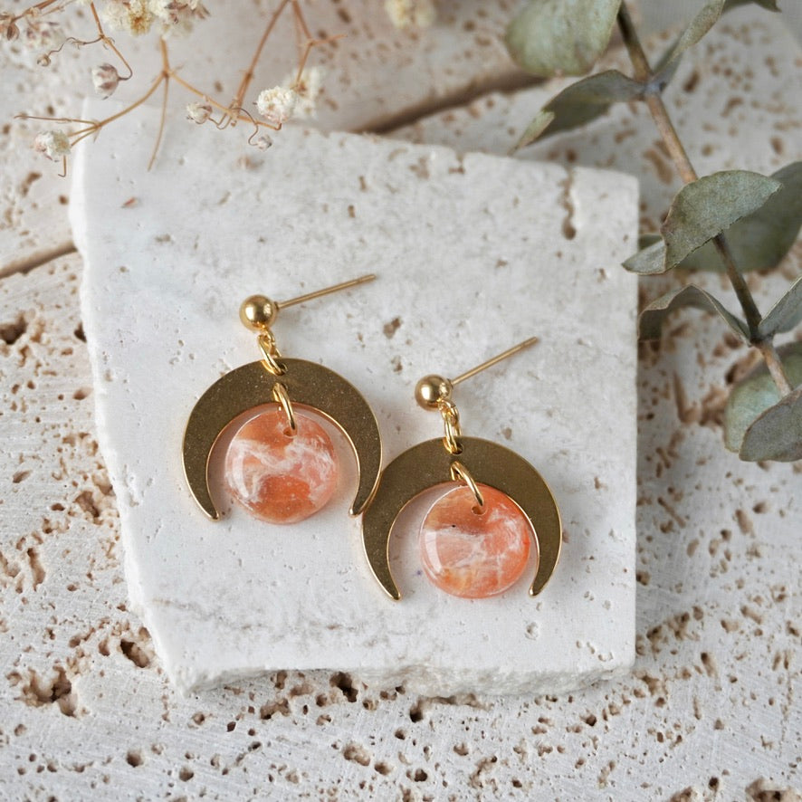 The creative process to craft the unique colour and stone like effect involves a mixture of translucent polymer clay, combined with an array of inks and metal leaf in such a way that achieves a one-of-a-kind finish. To complete the process, it is topped with a transparent resin to really highlight the colour and sparkle!