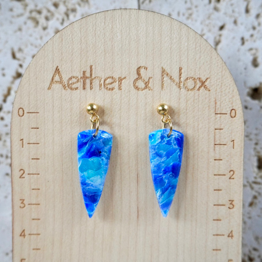 Materials - Polymer clay, clear UV resin and stainless steel fixings with optional rubber backs. These earrings will be provided on an Aether & Nox branded backing card