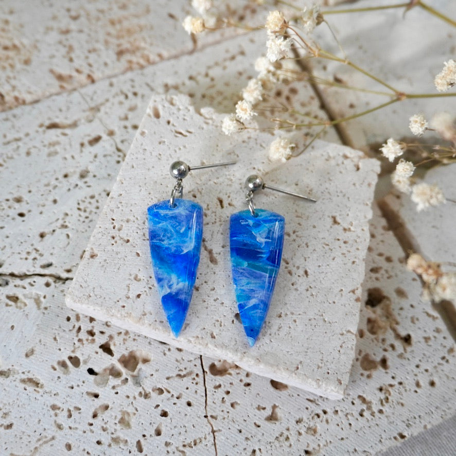 All of our jewellery is crafted by hand, so each has a unique finish making them one-of-a-kind pieces. The colour in the earring glows with vibrancy when the sun hits them.
