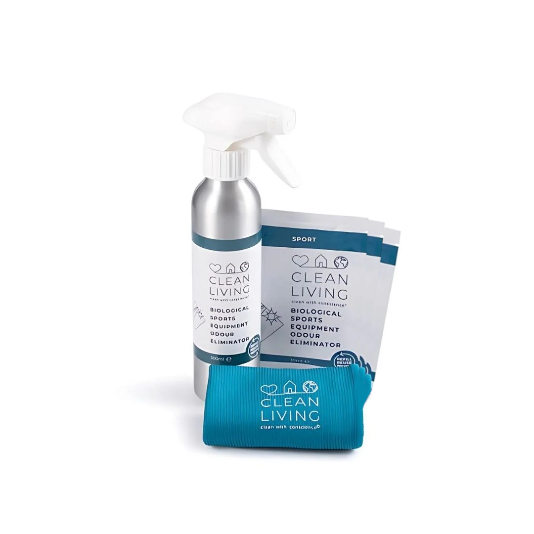 Clean Living Biological Sports Equipment Odour Eliminator is a superior formulation to keep sports equipment and sports wear free from bad odours. The unique odour encapsulation technology binds and traps odours on contact, whilst the live probiotic formulation breaks them down to remove odour at the source.