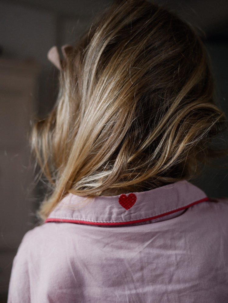 The fabric is light weight , breathable and perfect for summer sleep times. The collection from our Drop -3 of Pyjamas features a tiny heart embroidered on the collar, behind the neck.