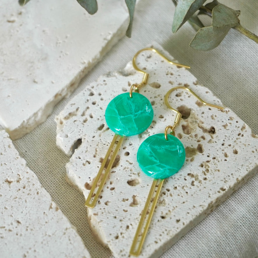 All of our jewellery is crafted by hand, so each has a unique finish making them one-of-a-kind pieces. The colour in the earring glows with vibrancy when the sun hits them.