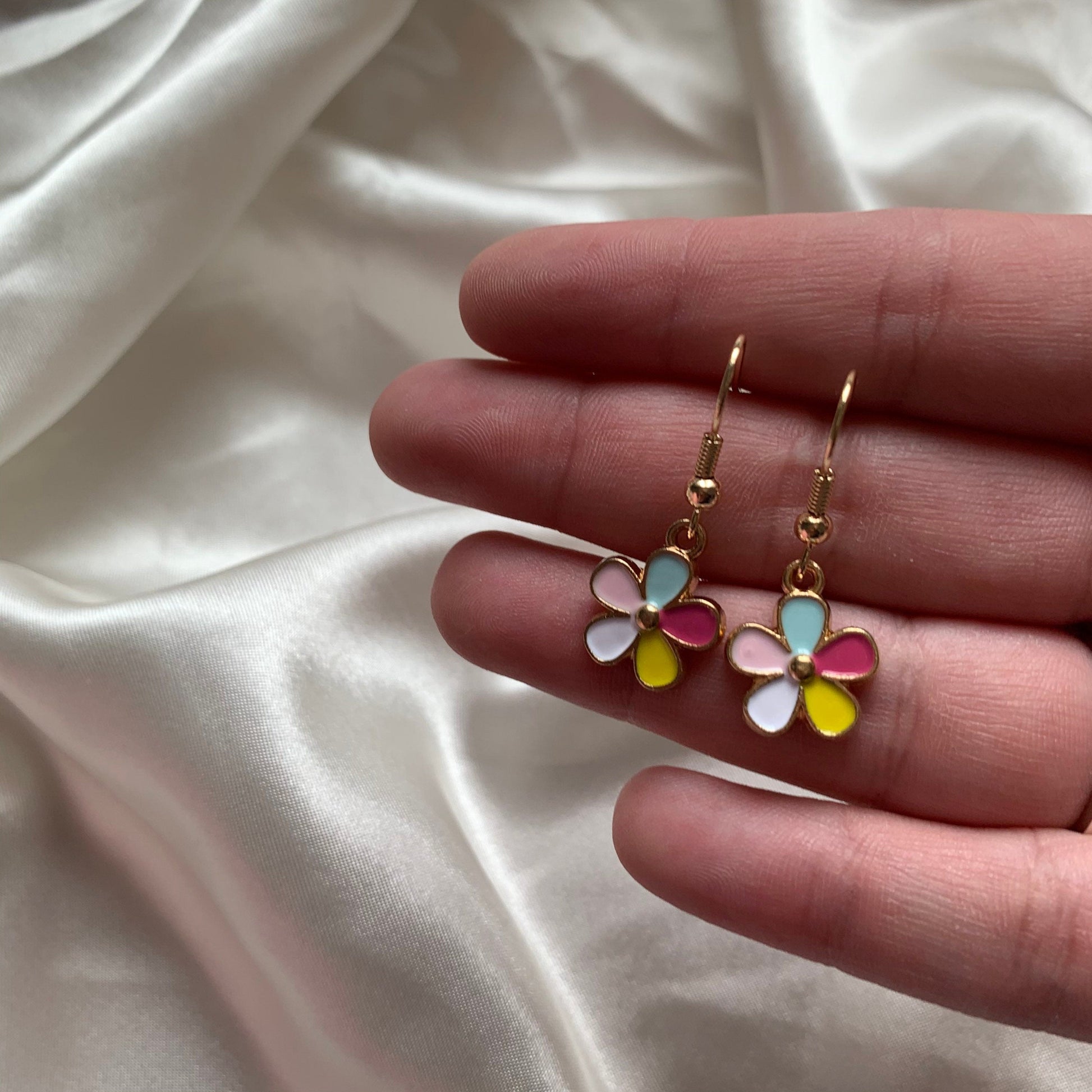 A cute pair of little colourful flower earrings on 18k gold plated hooks.