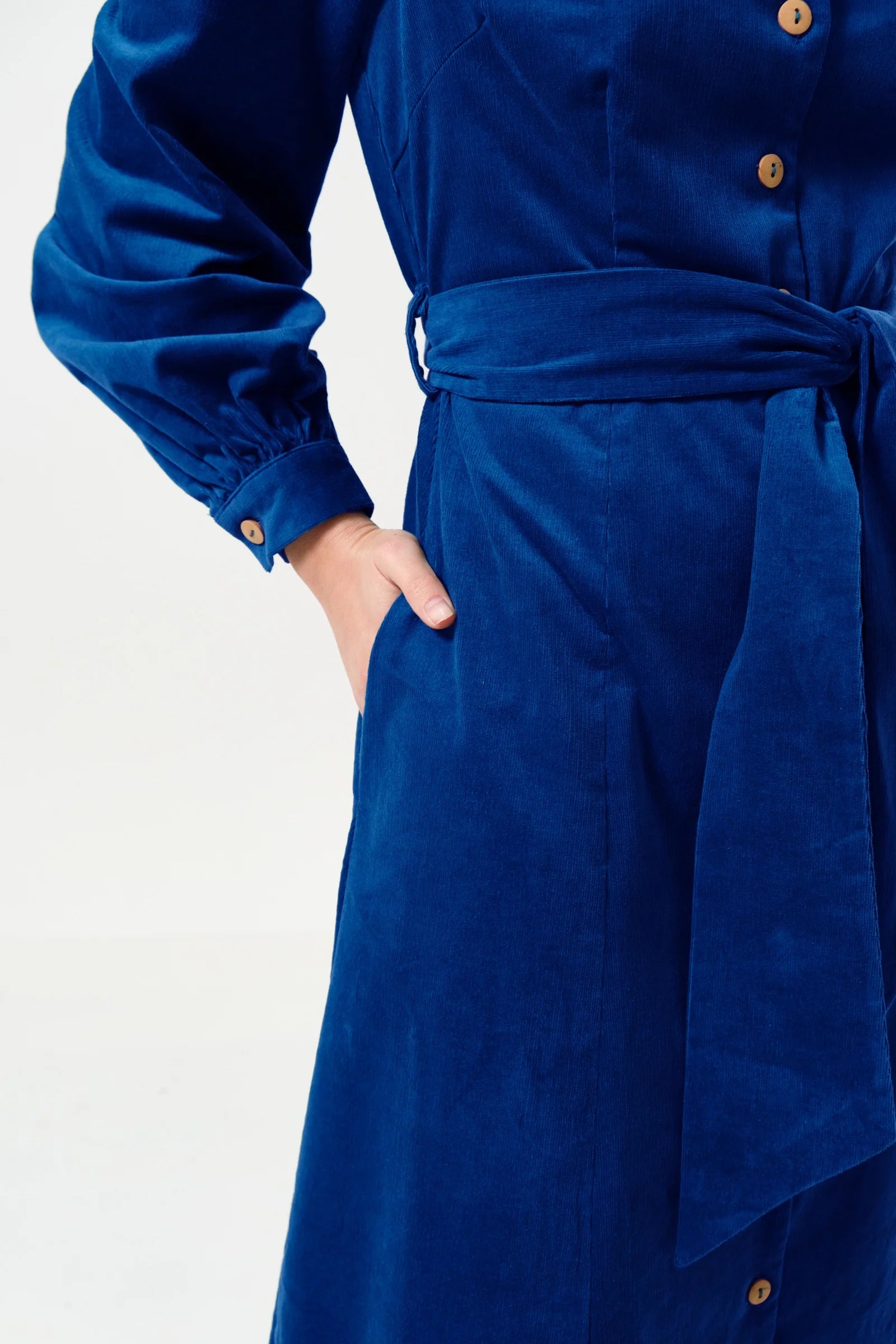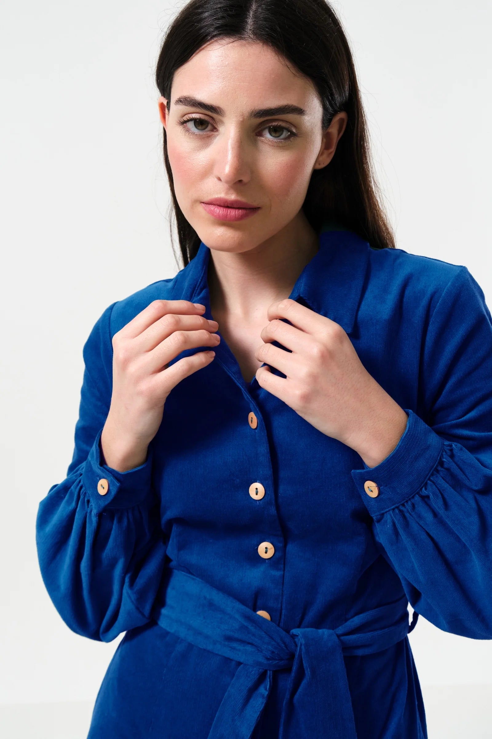 Rebecka Babycord Midi Shirt Dress - Cobalt