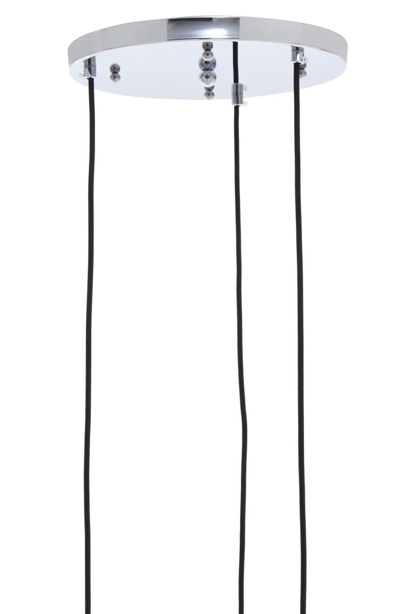 Made from durable metal and given a reflective chrome finish, this contemporary lighting fixture has three pendant lights hanging from a round metal support via black cords. The chrome lights have clear glass globe shaped shades completing the round shape. This pendant light will create a chic statement above the dining table diffusing ambient light into your dining area.