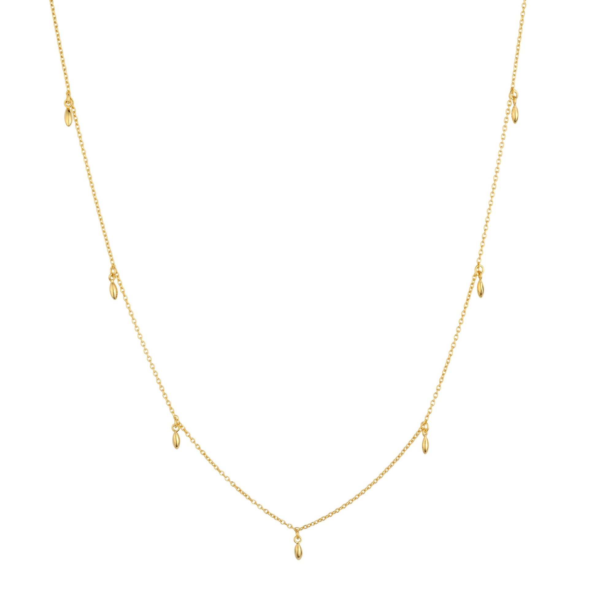 Elevate your style with our Yellow Gold Rice Grain Charm Necklace. Inspired by the Cambodian paddy fields, this 17" necklace is perfect for effortless layering. Show off your unique look and add a touch of class to your wardrobe. Complete the set with our matching earrings.